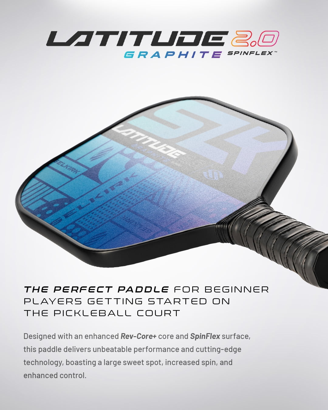 $42.14Original price was: $42.14.$31.82Current price is: $31.82.Now Clearance pricing! The SLK Latitude 2.0 offers a comfortable and accessible experience for new players. Experience the joy of pickleball with the Latitude 2.0, designed to make learning the game easy and enjoyable, ensuring a smooth and fun-filled journey on the court. Power – 6.0 Control – 6.0 Spin – 6.0 Weight Range: 7.5-8.0oz. Length: 15.5″ Width: 8.25″ SpinFlex textured surface Face: G4 Graphite Face Grip Circumference: 4.25″ Grip: SLK Ultra-Comfort Grip Handle Length: 5.25″ Core: Thicker Rev-Core+ Polymer Thickness: 13mm