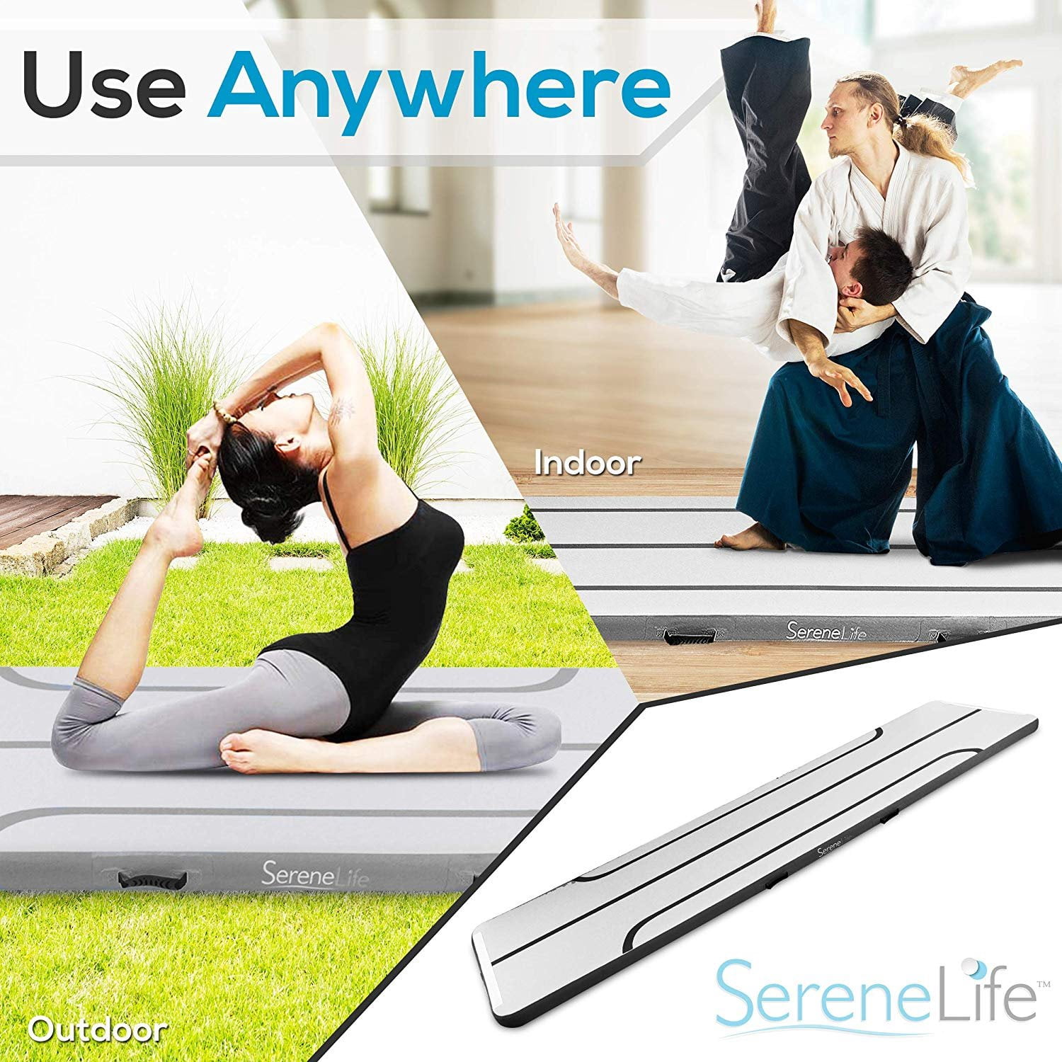 $252.83Original price was: $252.83.$196.93Current price is: $196.93.SereneLife Gymnastics Inflatable Air Tumbling Mat The SereneLife Gymnastics Inflatable Air Tumbling Mat is made W/ highly durable, puncture-resistant, thick drop stitch layered, reinforced PVC Polyester w/ PVC thickness of 0. 08cm on each side. Great for indoor/outdoor Use. This Gymnastics Inflatable Air Tumbling Mat very perfect for Training and Home Fitness! Gym & Fitness Exercise Inflatable Floor Mat Comfortable & Bouncy Tumble Mat Design Lightweight, Portable Tumbling Air Mattress Style Used for Yoga, Gymnastics, Cheerleading, Martial Arts Training Waterproof Rated Design for Poolside Water Sport Activities Extra Wide Track Pad Cushion for Full Body Support Velcro Straps to Prevent Sliding on Carpet Convenient Handle Grips for Transport