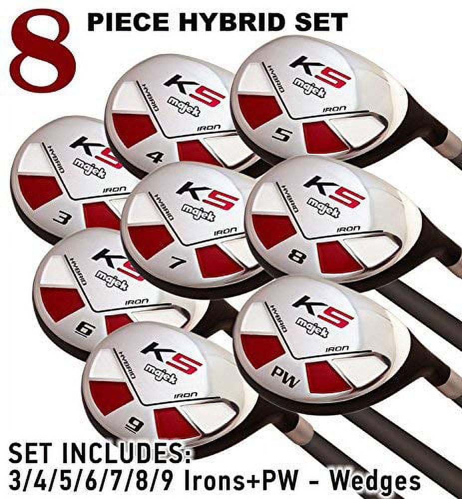 $300.96Replace Your Entire difficult to use iron set with the Majek K5 all hybrid iron set! Majekally improve your Hybrid-Iron game! Pure Golf Engineering: Majek Hybrid was Co-Engineered by members of the UCLA’s engineering department. This unique relationship and pure engineering approach created the Majek All Hybrid Iron Set. Benefits of the Majek Hybrid: -More Weight Positioned Behind The “Sweet Spot” -Deeper Cavity Back Creates A Tighter Shot Dispersion, Which Increases The Accuracy On Off Center Hits. -Aerodynamic Design Creates A Reduction In Drag, Which Leads To Higher Club Head Speeds -Wide To Thin Crown Design Creates A Lower CG To Promote Higher Launch Angle For More Distance -Lightweight Premium Graphite Shaft Promotes Faster Swing Speed For Greater Distance. -Black Crown And Arrow Markers Make Alignment Easy And Eliminates Glare. Support A Local Company: Your Custom Made Majek Golf Hybrid Is Assembled By Hand In Riverside, CA, USA And Delivered Direct To Your Door.