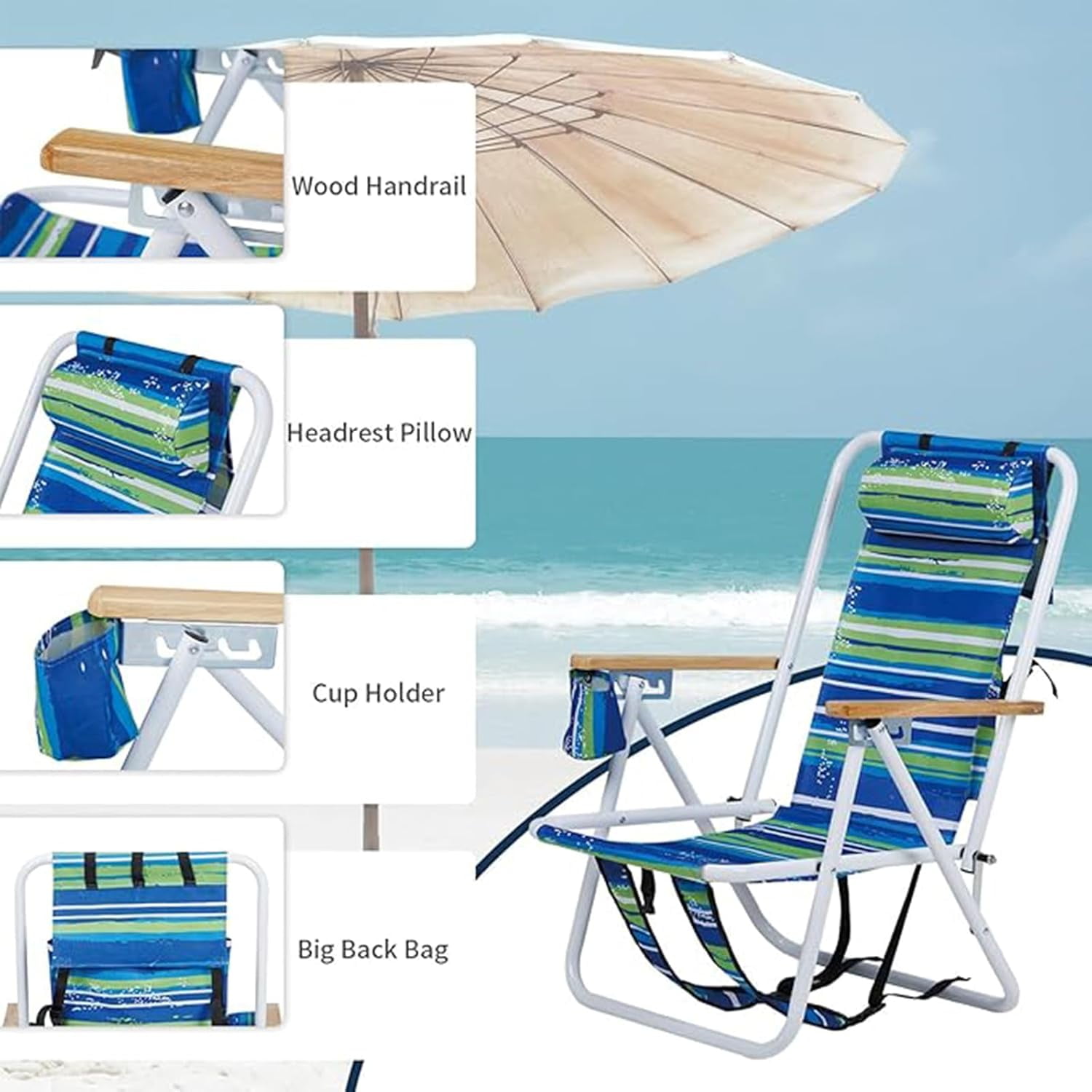 Ambifirner 2 Pack Backpack Beach Chairs for Adults – Folding Heavy Duty Camping Chairs with Cup Holder, Adjustable Height, and Towel Rack for Outdoor Travel