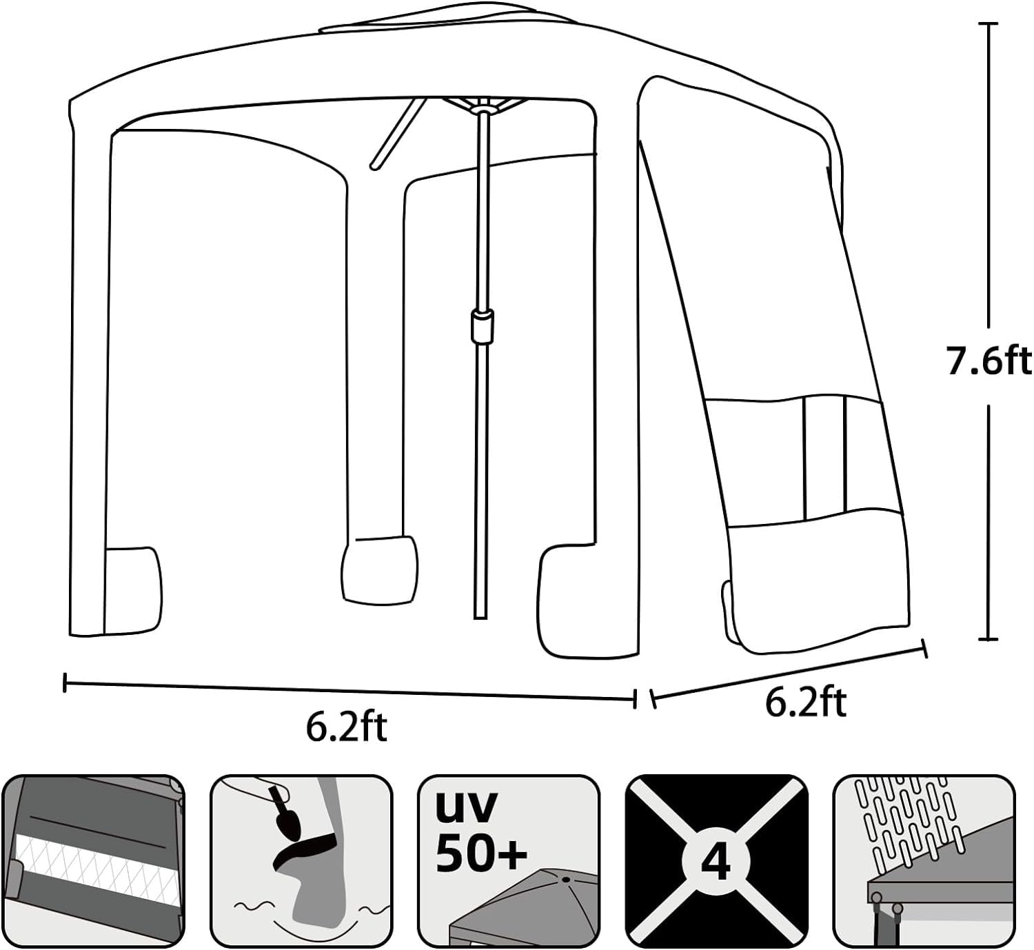 $85.99This is such an amazing canopy. Hit the beach in style with a cleverly designed AMMSUN cool canopy that will keep you cool, scream summer fun, and use meticulous fittings with impressive durability. The sandbagged legs prevent this tent from flying away on a windy day, a far upgrade from all the wobbly umbrellas that surround. The vibrant designs have sturdy poles, including a hammer pole, making it easy to quickly set up and pack up alone. Enjoy quality construction and UPF 50+ polyester fabric and PA coating for effective waterproofing. Easy to set up, taking five minutes to put up and down. It is also super chic and beautiful, lightweight and easy to carry in a cute carrying bag. Get full shade under the roof with the included removable wall. Along with a free beach umbrella hook, hang your towels, hats, clothes, camera, sunglasses, bags, and your precious iPhone on this beach umbrella hanging hook. Each one measures 6.2′ × 6.2′, so it will provide plenty of shade for you to cool off, ideal for family or couples. We invite you to join our journey to create unforgettable memories with the ones you love the most.