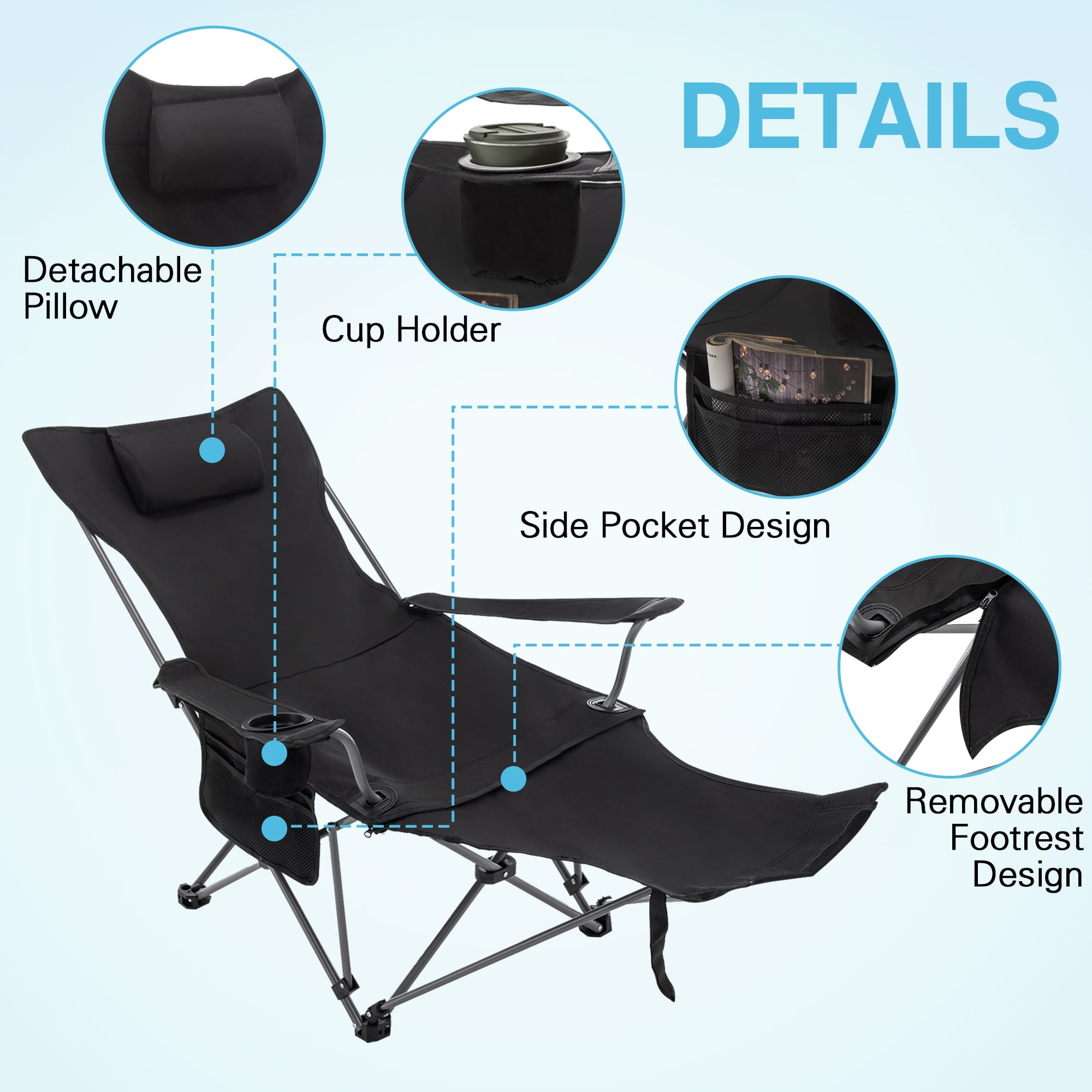 Andeworld Reclining Camping Chairs with Removeable Footrest,Lounge Chairs with Headrest,Adjustable Folding Chairs for Adults,Black