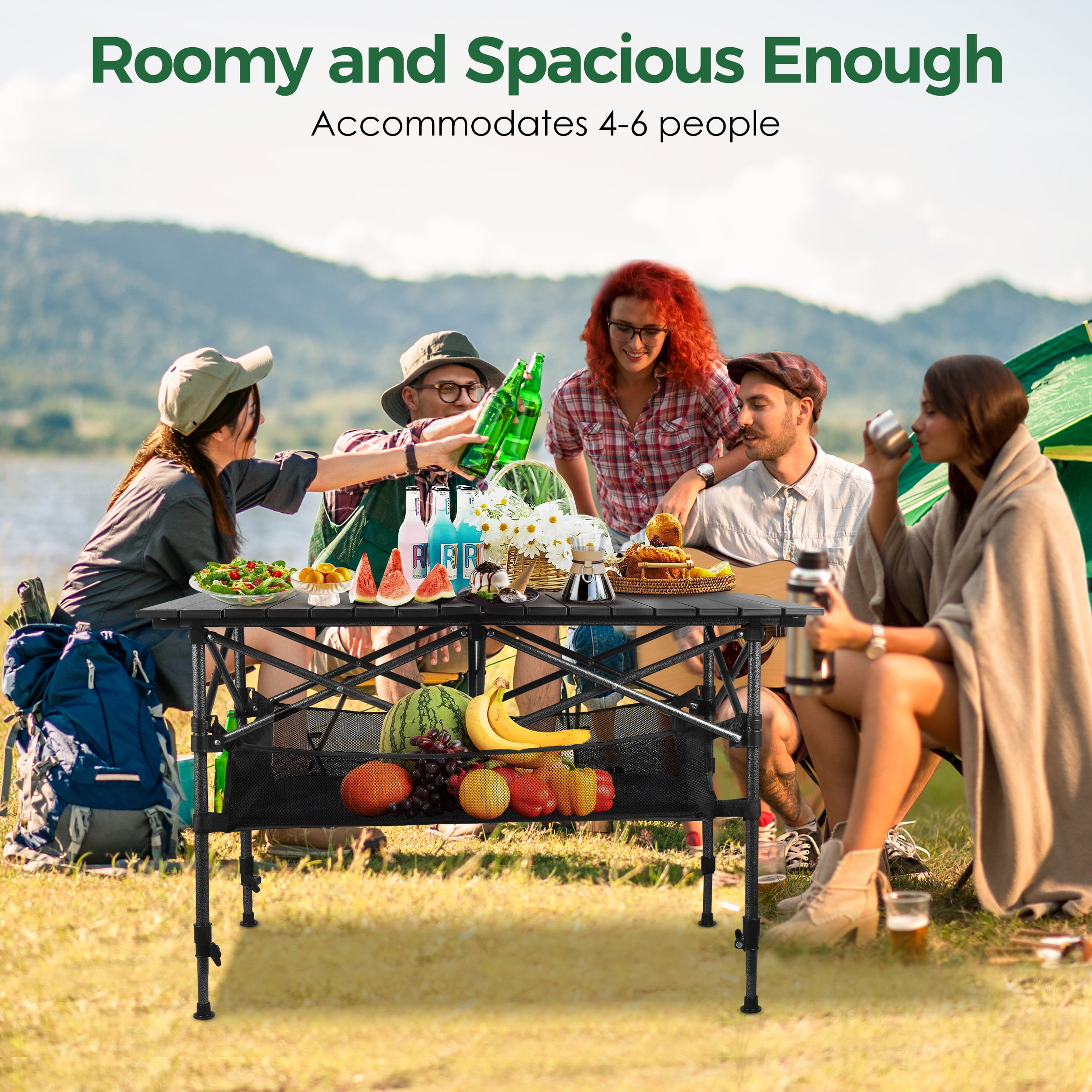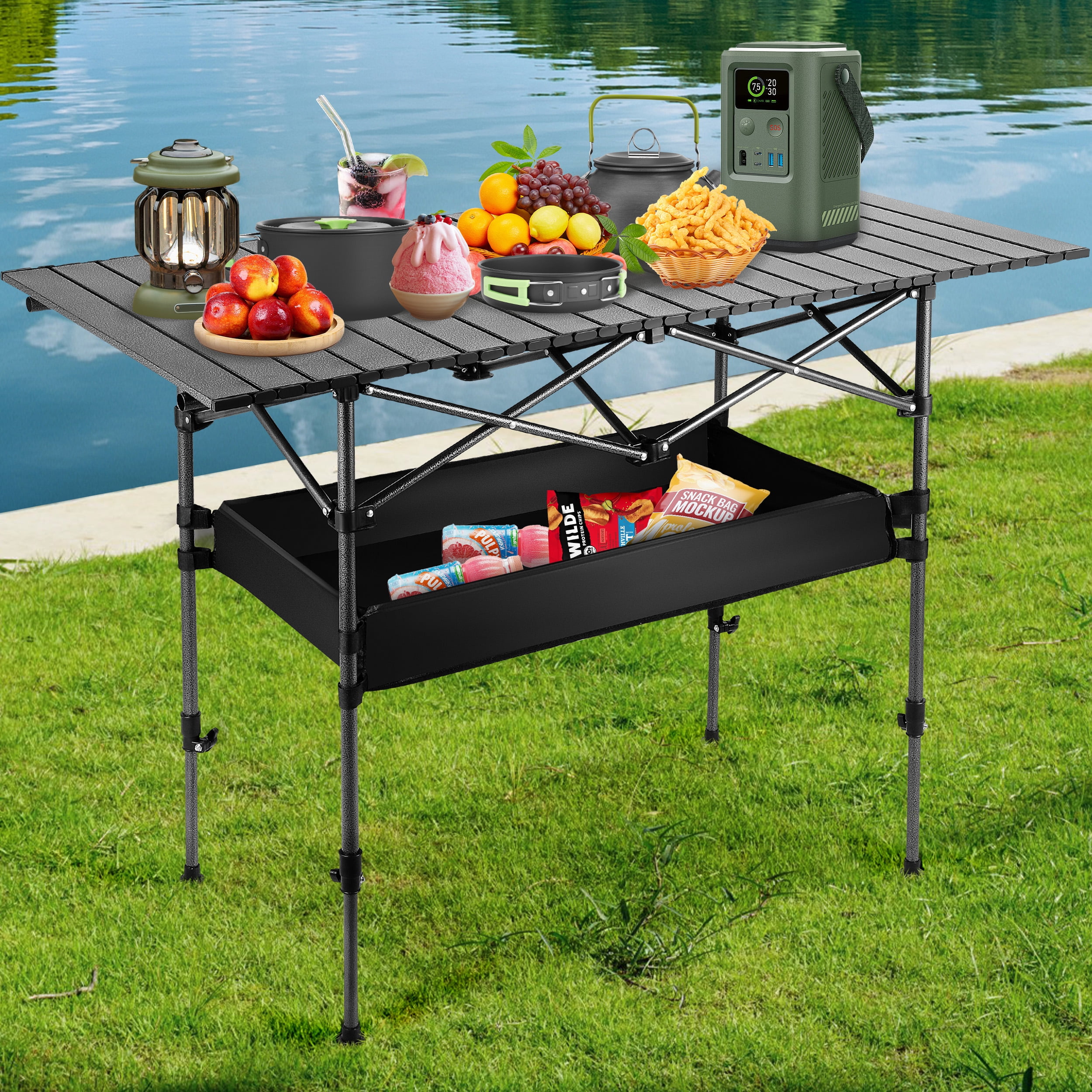 $39.55🌟[ Large Storage Space & Size ] : The camping table open size: 47”L x 22”W x 19.68”H, folded size: 26.4”L x 9”W x 6.3”H, net weight: 11.68 lb. Our portable picnic table provides enough seating space for 4-6 people and comes with a large storage basket (26.8” x 16.2” x 4.7”) for toys, snacks, magazines. 🌟[ Heavy Duty Stable Construction ] : Our camping table is made of upgraded aluminum, which is matte texture, high temperature resistance, rust-proof, waterproof. X-shaped support tubes make the folding table more sturdy, the thickened leg frame is made of high-strength steel, and the non-slip foot mat make it more stable on uneven ground. 🌟[ Easy to Assemble & Carry ] : This folding camping table is detachable, you can easily fold it into a compact size! Our portable travel table comes with a waterproof storage bag, which perfect for picnics, camping, hiking, fishing, beach. 🌟[ Multi-Function Folding Table for Daily Use ] : This portable folding table can be used as a outdoor dining table, BBQ Table?laptop table, gaming table. Perfect for Camping Beach Backyard BBQ Party Patio Picnic.Easy to clean: The portable picnic table’s tabletop is waterproof and stain-proof, so you don’t have to worry about spilling drinks on the table, just wipe it down. 🌟[ Customer First ] : aim to share the highest quality product & the best service with the customers, therefore, if you have any question, please just come to us and we will give you a good solution.