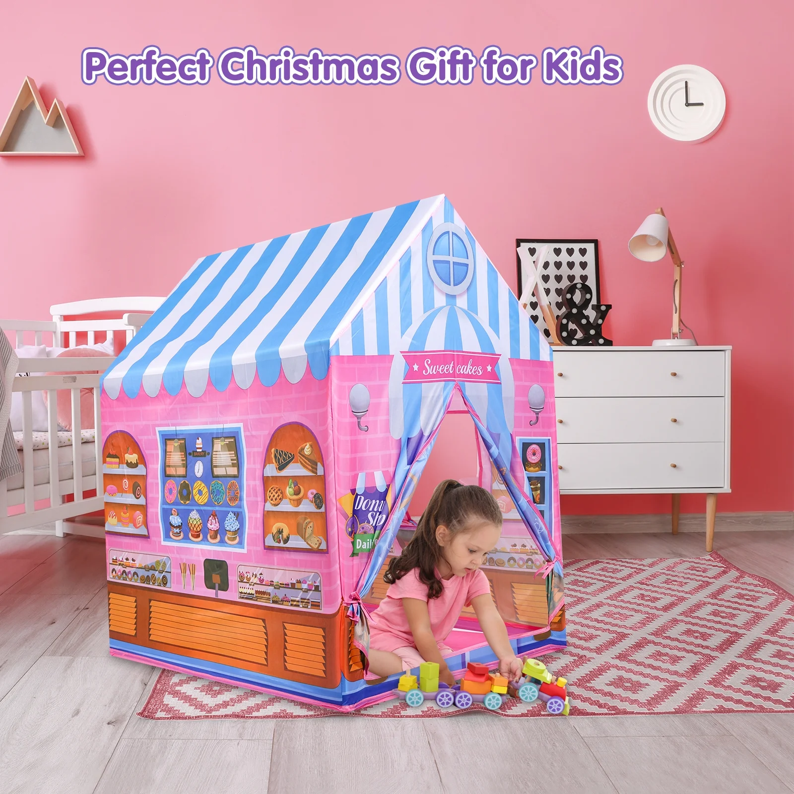 $15.47Sweet Candy Store Pop-Up Tent: Timeless Playhouse Get ready for a funny adventure with the Ant Class Sweet Candy Store Pop-Up Tent! Designed to encourage creativity and social play, this interactive playhouse will transport your kids to the world of candy store vendors, complete with nursery rhymes and colorful graphics. Made of sturdy polyester fabric material and reinforced with poles, this tent is built to support your kids’ adventures. Easy to install and carry, it’s perfect for indoor and outdoor playtime. Just twist it open, and the tent pops right up. Watch your kids’ imagination come to life! Features: Realistic Design – A playhouse that will transport your child to a sweet wonderland, Sweet candy store is painted in pink with realistic bakery and candy graphics. Plus, it has an ordering and serving window, perfect for role-playing among kids. Spacious Interior – With dimensions of 36 x 28 x 40 inches, this tent promises a thrilling and one-of-a-kind playtime adventure for your children. Boasting dual-top openings and mesh front window for ventilation and a rear flap door for easy entry and plenty of room for your kids to play. Pop-Up Technology – Featuring a straightforward pop-up design that requires no tools to assemble, you can get the fun started in no time. Plus, when playtime is over, the tent’s effortless fold-up design and compact carry bag make it a convenient storage solution for indoor playtime. Travel Buddy – Take the fun on the road with the Sweet Candy Store Pop Up Tent – your ultimate travel buddy! Its lightweight and compact design makes it easy to pack in your car trunk, while its durable materials can withstand any adventure – at the beach or in the park. Surely, it will keep your little ones entertained no matter where you go! Specifications: Material: Polyester Style: Candy House Theme: Kids Play Tents Age Range (Description): Toddler; Kid Assembly Required: No