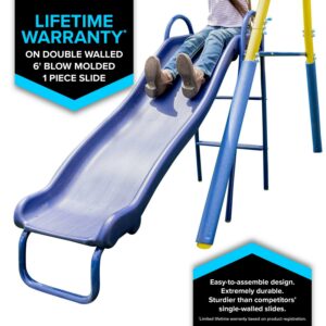 Sportspower Live Oak Metal Swing Set with 6′ Double Wall Slide with Lifetime Warranty, and Bonus Anchor Kit