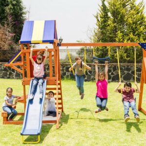 $238.87Bring loads of outdoor fun to your backyard with the Sportspower Super Surfer Metal Swing Set. This swing set was designed with security and durability in mind and is constructed of corrosion-resistant powder-coated steel to last for years to come. Up to 6 kids can play on the swing set together. The swing set offers a variety of swinging style options and there will surely be a favorite for everyone. The kids can choose from the innovative 2-person sky flyer swing, unique surfboard style swing, versatile standing/sitting blow-molded swing or the classic sling-style swing. The swing set also includes a 6ft blow-molded wavy slide, with a 1pc design for easy assembly. All swings are height adjustable and covered with PVC coating to protect children’s hands. All Sportspower products meet or exceed all ASTM safety standards, so kids and parents can both enjoy the Super Surfer Metal Swing Set with peace of mind.