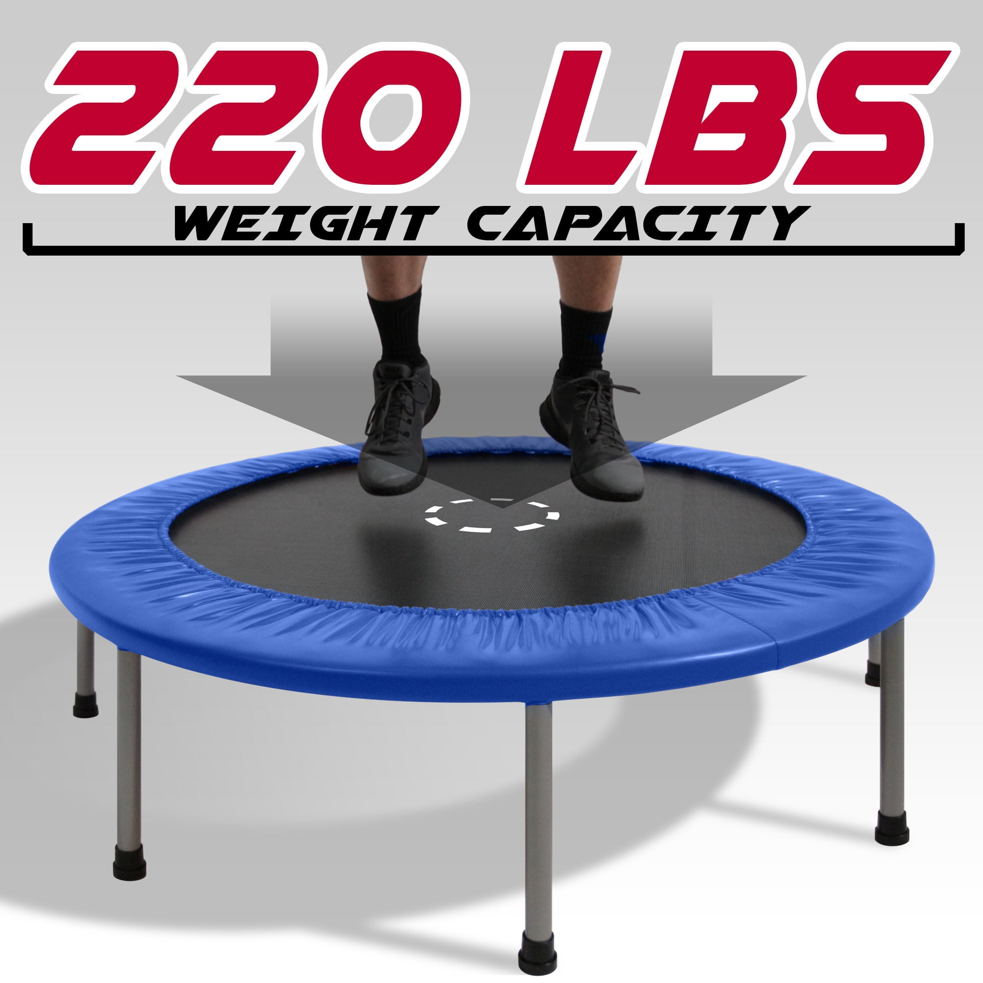 $43.08We took all the excitement of a regular sized trampoline and shrunk it into one that is portable! The 48-Inch Mini Trampoline with Handle Bar by TruJump is the perfect equipment for anyone looking for added fitness exercise at the comfort of their own homes. TruJump Trampoline is tiny, but mighty as it is comes with rust resistant galvanized steel frame, UV resistant jump mat and padded spring cover for additional safety. The 48” Mini Trampoline with Handle Bar also has detachable heavy-duty legs to make storage and transport easier. The trampoline is design for you to easily move from room to room. It is perfect for low-impact exercise to help you to meet any fitness goals. With the help of the padded handle bar, you are able to perform over 15 different exercise movements to strengthen your core. Make your workouts more challenging and fun by adding a little bounce in your routine and feel the difference! Stay healthy and fit with 40-Inch Mini Trampoline by TruJump.