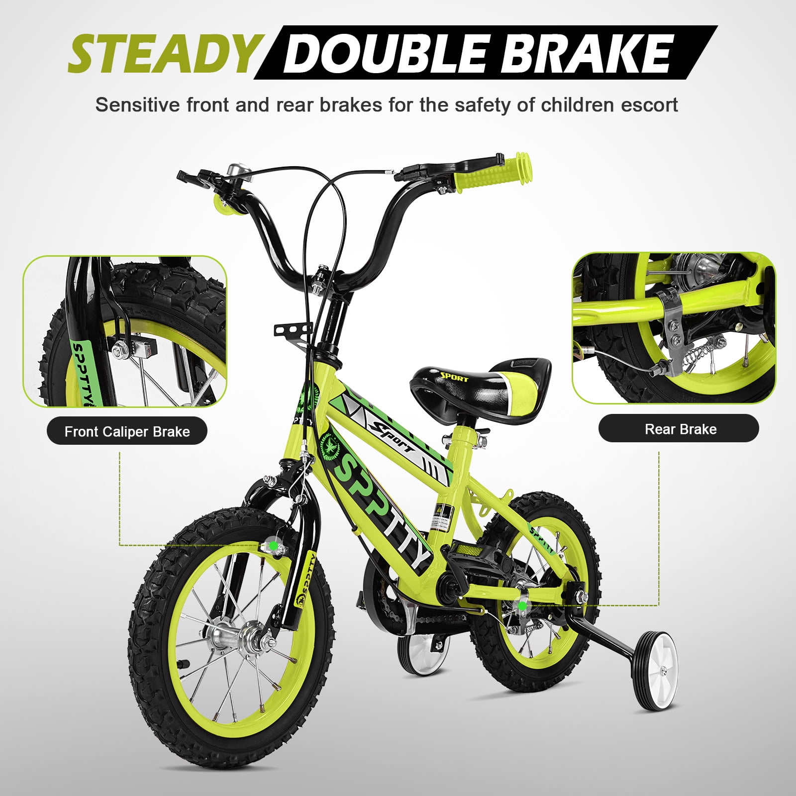 SPPTTY Kids Bike for 2-16 Years Old,12″-20″ Bike for Boys Girls with Training Wheels,Dual Hands Brakes