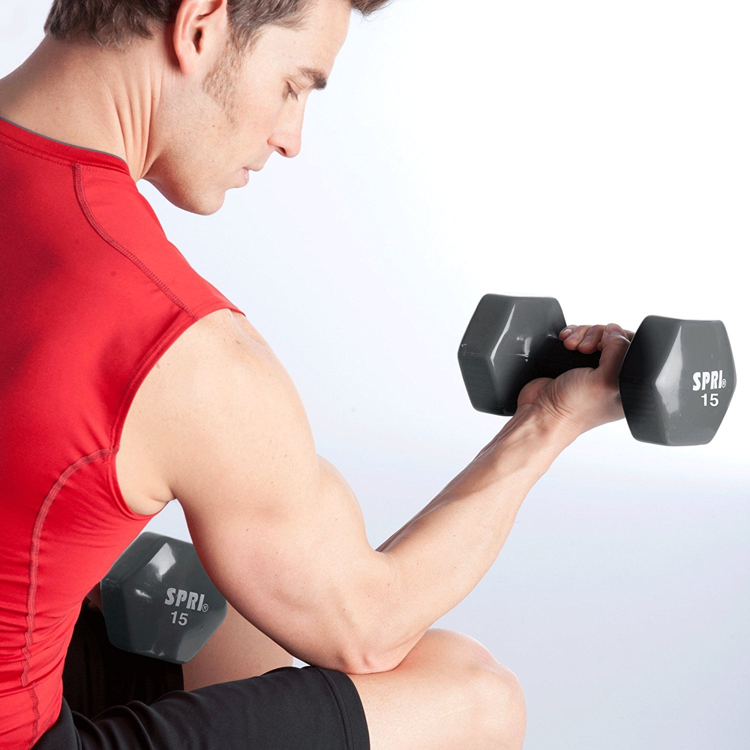 SPRI Deluxe Vinyl Dumbbells, 15 lb Pair, Grey