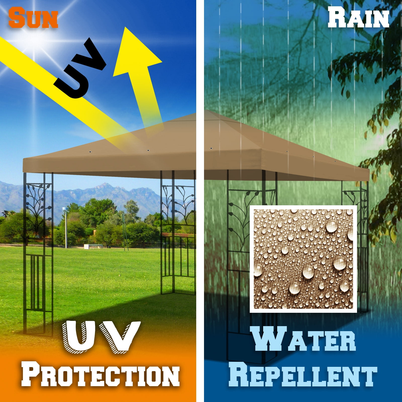 SUNNY 10×10 FT Gazebo Replacement Canopy Top Single Tier Canopy Top Cover (Tan)
