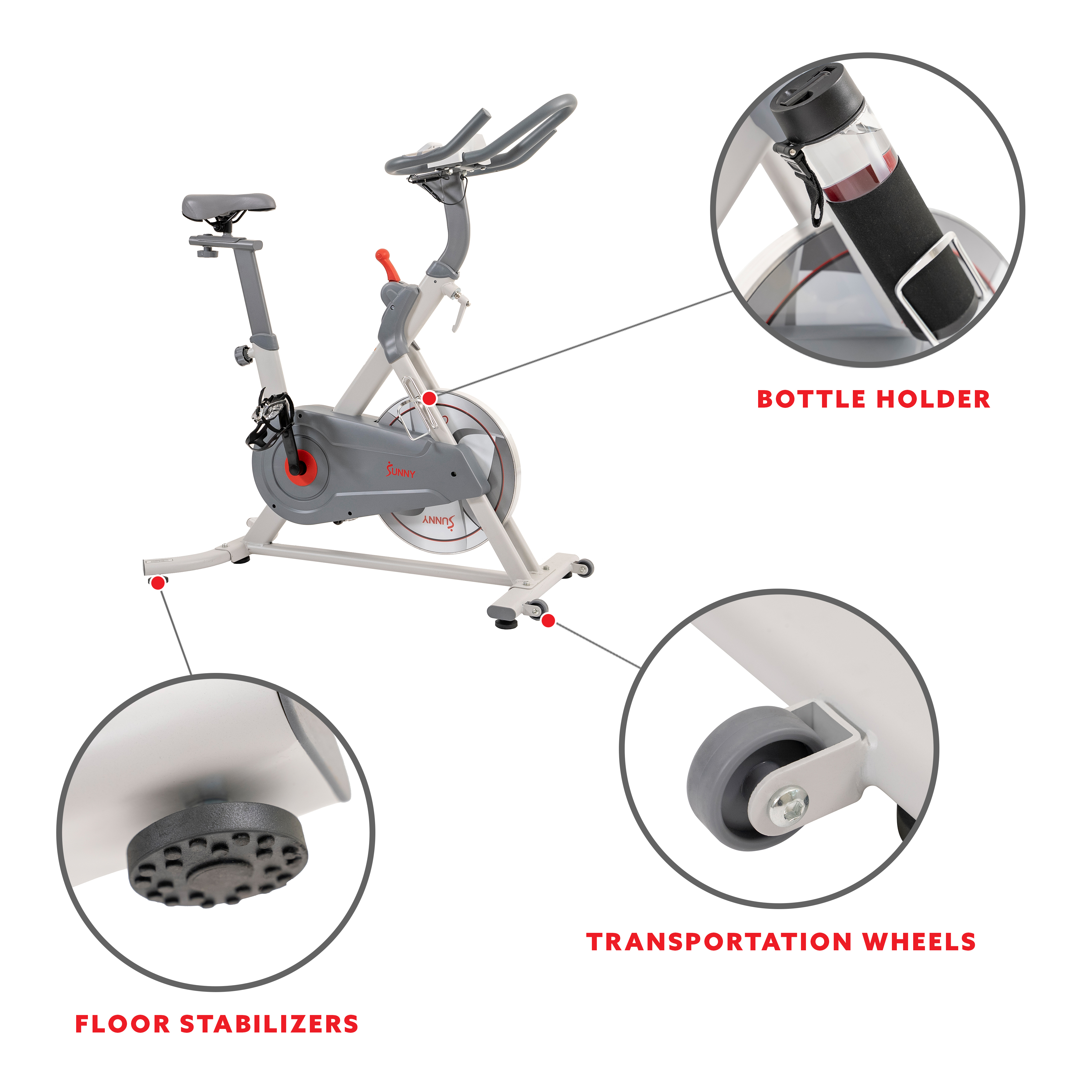 Sunny Health & Fitness Belt Drive Pro Lite Indoor Cycling Exercise Bike in White- SF-B1970