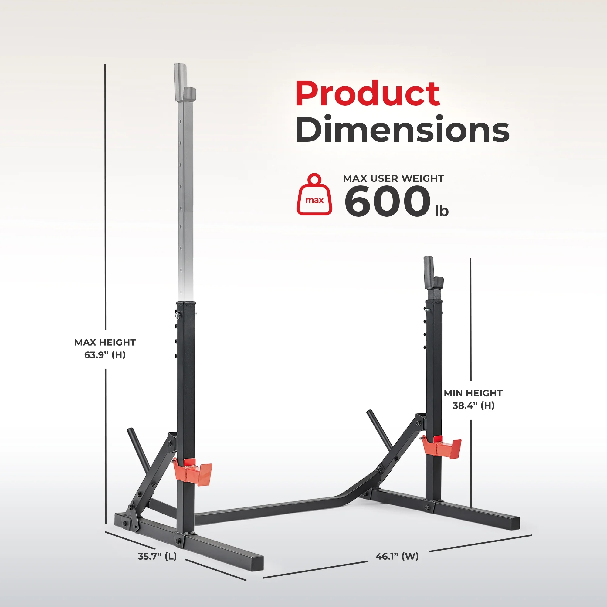 $171.99Original price was: $171.99.$149.82Current price is: $149.82.The Squat Stand Power Rack is a perfect tool for anyone looking to begin their weightlifting journey. Constructed with heavy-duty steel, this entry-level power rack can be configured to meet your needs and your living space. Its 3-level adjustable pull-up bar allows you to have as much room as possible for your workouts. The vertical design takes up minimal space in your home gym yet offers a serious workout when you are ready to lift weights. Adjust the rack to fit your body size using the 18 different j-hook height options, setting up each lift for comfort and success. Compatible with SF-XFA001 – SF-XFA007 accessories as well as any bench, you can customize your workout to meet your preference and needs. Take one step closer to achieving your fitness goals with the Squat Stand Power Rack!