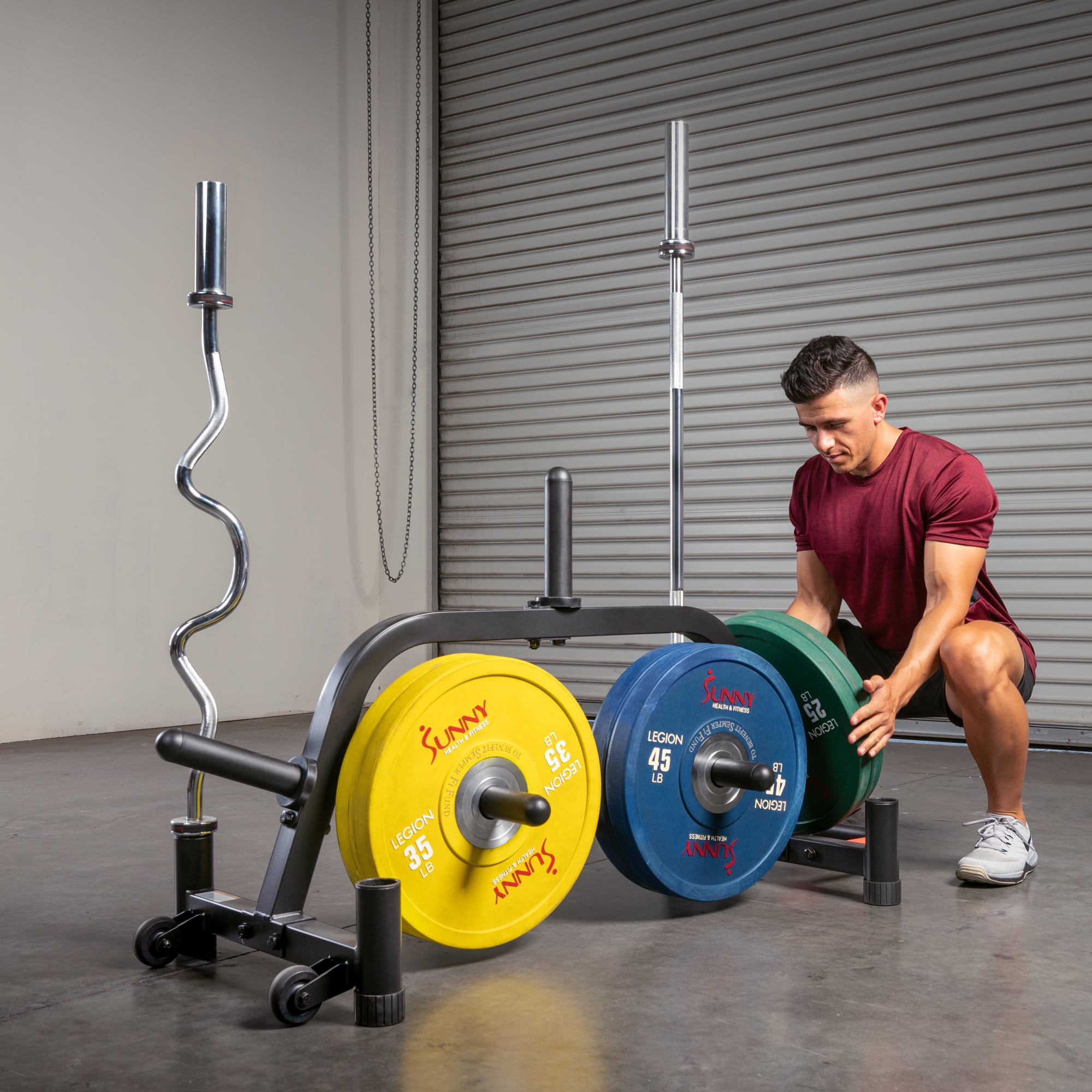 $171.99The Sunny Health & Fitness Multi-Weight Plate and Barbell Rack Storage Stand SF-XF9938 is essential for keeping your equipment secure and organized. Offering storage options for weight plates of multiple weights and hole sizes. The unique design is sturdy and space efficient. Pair it with your squat rack or power racks to switch weights quickly and conveniently during your sessions. It is a great addition next to your dumbbell rack storage to complete your total home strength training gym.