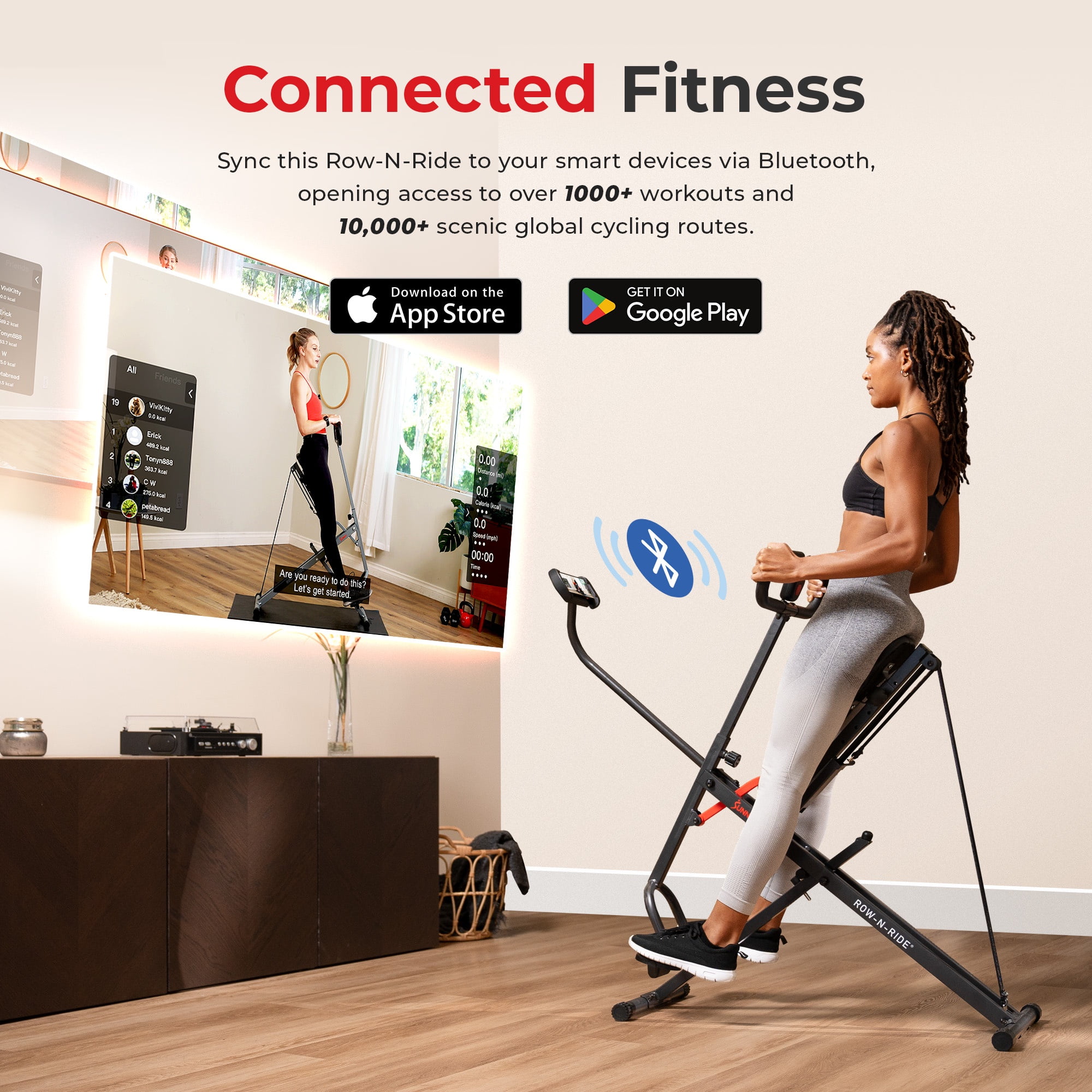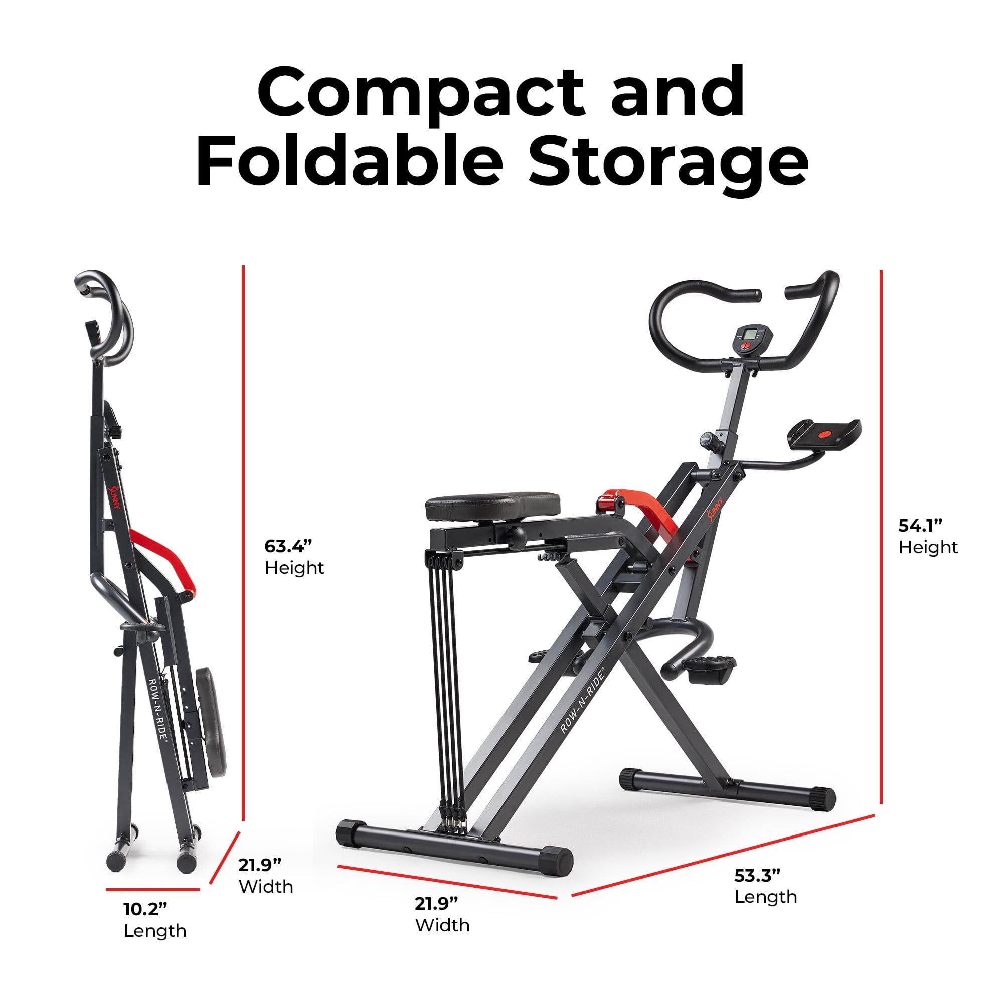 $116.09Introducing the Sunny Health & Fitness Smart Upright Row-N-Ride™ Exerciser (NO. 077SMART) – your ultimate all-in-one home fitness solution. This versatile machine offers comprehensive workout experience, combining squats, dynamic rowing exercises, glute toning, ab sculpting, and strength training, all in a single, compact device. Tailor your squat workouts with precision using adjustable motion settings at 30, 60, and 90 degrees, ensuring a personalized and effective training experience that matches your fitness level and goals. Stay connected and engaged with the connected fitness experience – sync via Bluetooth to monitor your progress, customize workouts, and access a vast library of training videos, global tours, fitness programs, and community engagements, providing an interactive and motivating fitness journey.The Smart Upright Row-N-Ride™ Exerciser is equipped with a built-in LCD monitor that keeps you informed with real-time data on calories burned, workout duration, and total count. The device holder ensures you stay entertained and connected, enhancing your workout experience. Customize your exercise intensity with 4 adjustable resistance levels, allowing you to progressively challenge yourself and adapt your workouts to your fitness level. Enjoy maximum comfort with the machine’s adjustable handlebar, featuring four different length settings, accommodating users of all sizes and providing a customized grip. The padded seat is designed for optimal comfort, ensuring a supportive workout, even during prolonged sessions.Setting up your fitness routine is hassle-free with the Smart Upright Row-N-Ride™ Exerciser, designed for straightforward assembly. Its sturdy and durable frame guarantees stability during the most rigorous workouts, accommodating users up to 220 lbs. With Sunny Health & Fitness’ 20+ years of expertise in the fitness industry, you can trust in our commitment to excellence. Enjoy peace of mind with a 1-year warranty on the structural frame and rely on our dedicated customer service for superior support. Transform your home workouts with confidence and convenience – start your fitness journey today with the Smart Upright Row-N-Ride™ Exerciser by Sunny Health & Fitness.