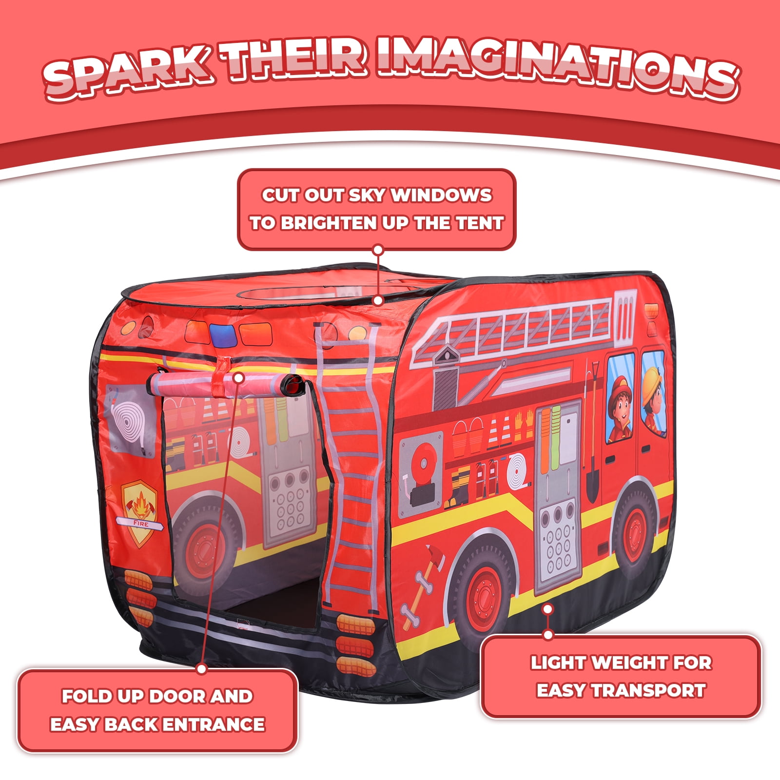 Super Joy Play Fire Truck Pop up Tents for Kids, Play Tents for Boys Playhouse Tent Birthday Gift for Indoor Outdoor