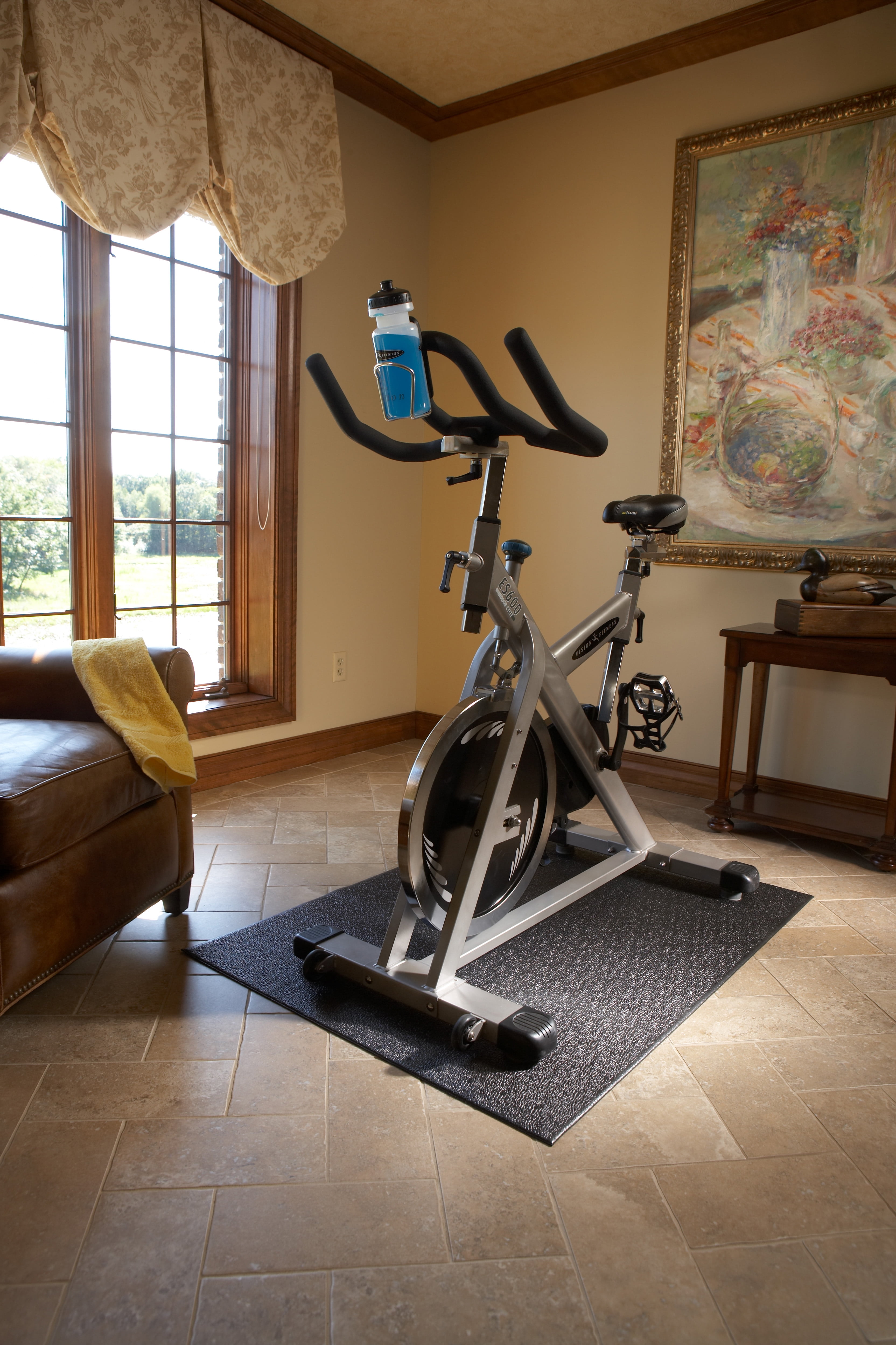 $39.41The SuperMats Hybrid Bike Mat is the best possible choice for home and suitable for light commercial use. Our proprietary Hybrid vinyl material is a cross between foam and sold vinyl and is perfect for exercise bikes, steppers, step aerobics or stretching. This heavy duty mat has a non-slip surface that is constructed for heavy usage and convenient for any area in your home, garage, or business. Ideal to cushion your floors and protect your equipment.
