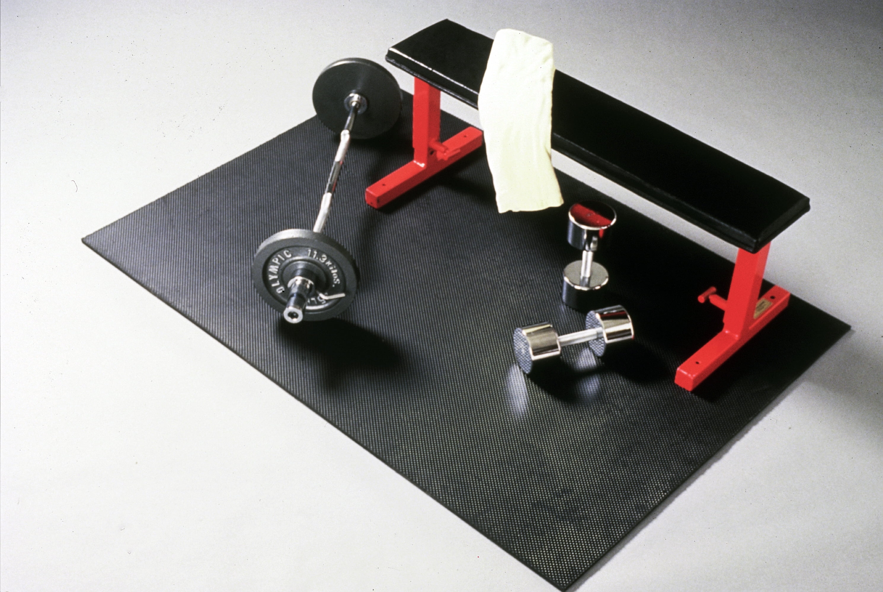 $117.41The Supermats Heavy Duty Large Home GymMat is perfect for all home gyms utilizing weight stack systems, free weights or other forms of resistance training. Made of super-tough, odor-free solid vinyl material, with a non-slip surface that ensures a safe and sound-dampened workout. GymMat will enhance and protect any room in your home or business. Non-Toxic and safe for all ages.