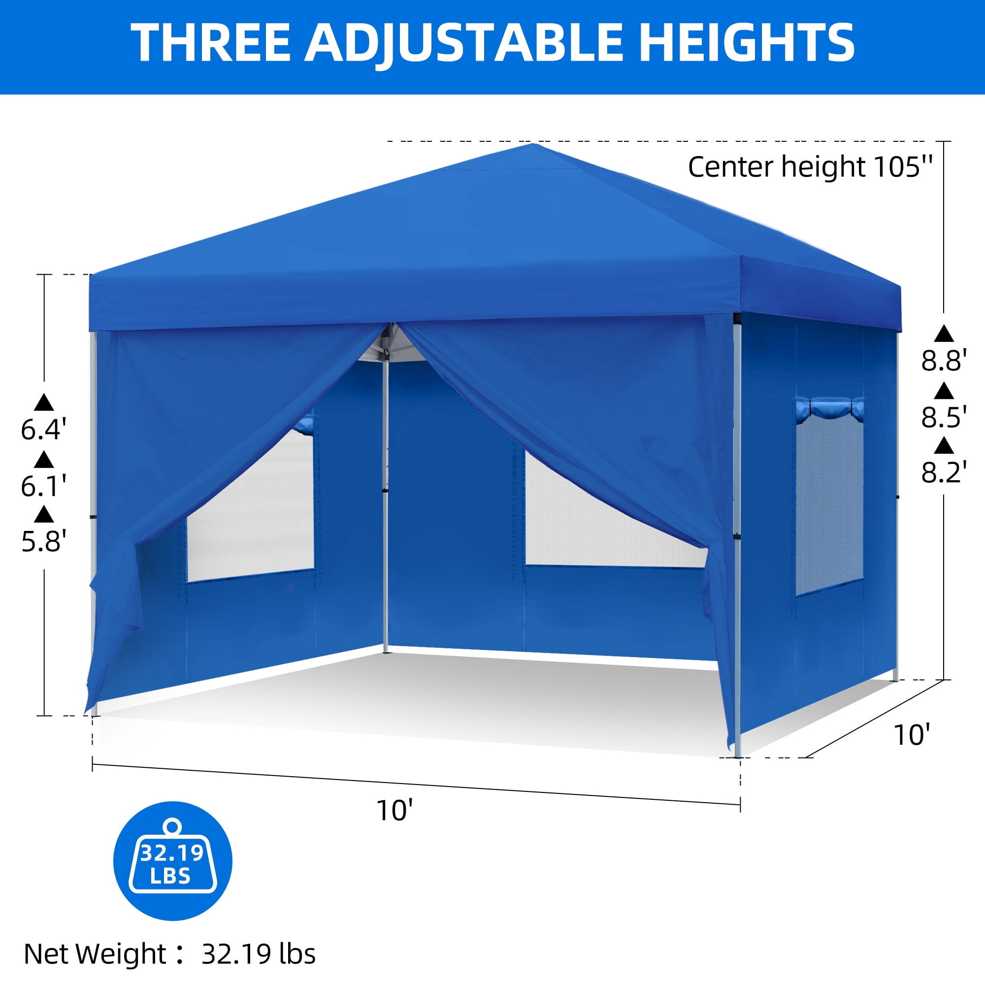 Uforic 10 ft x 10 ft Easy Pop up Outdoor Canopy Tent with 4 Removable Sidewall, Blue