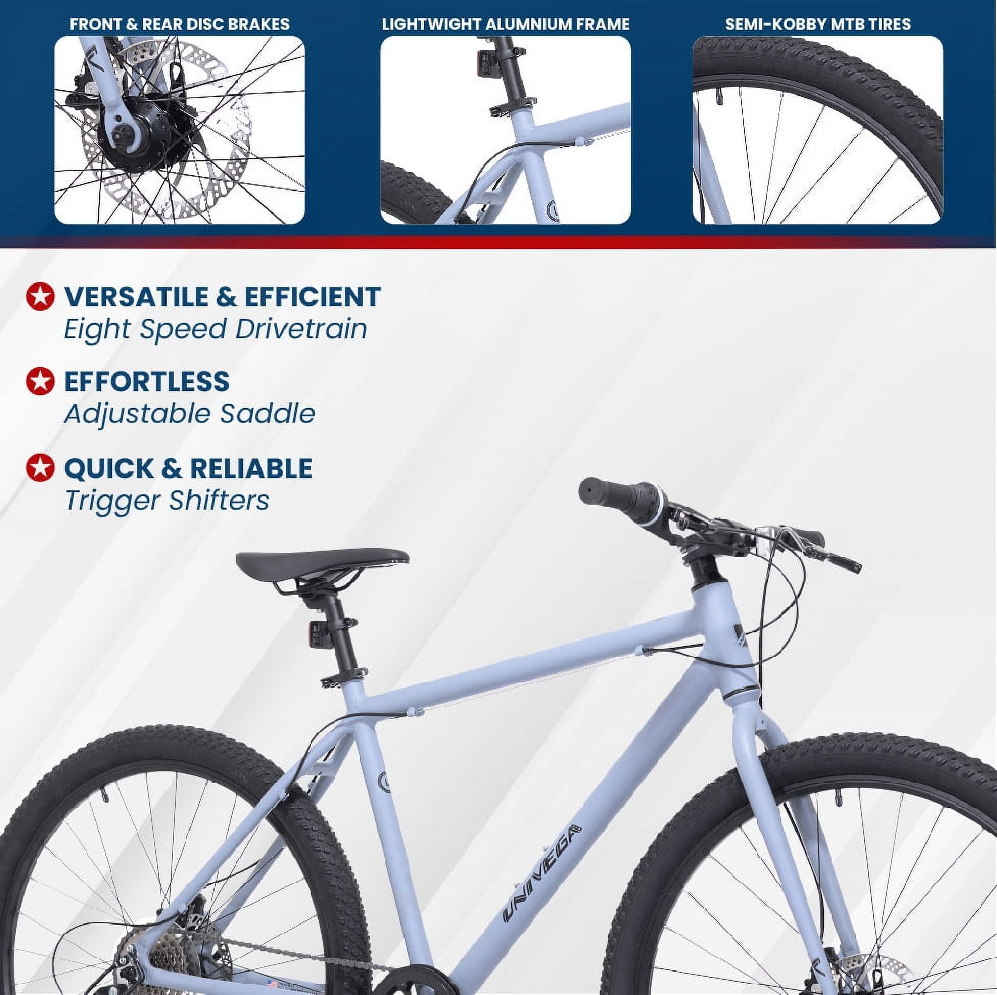 $127.28The 27.5″ Univega-USA Rover Flex is a capable mixed terrain bike for taller teens or adults. Lightweight rust-resistant components, aggressive knobby mountain bike tires and easy to use twist shifters make this the perfect bike for cruising the neighborhood or getting your feet wet in the world of trail riding.