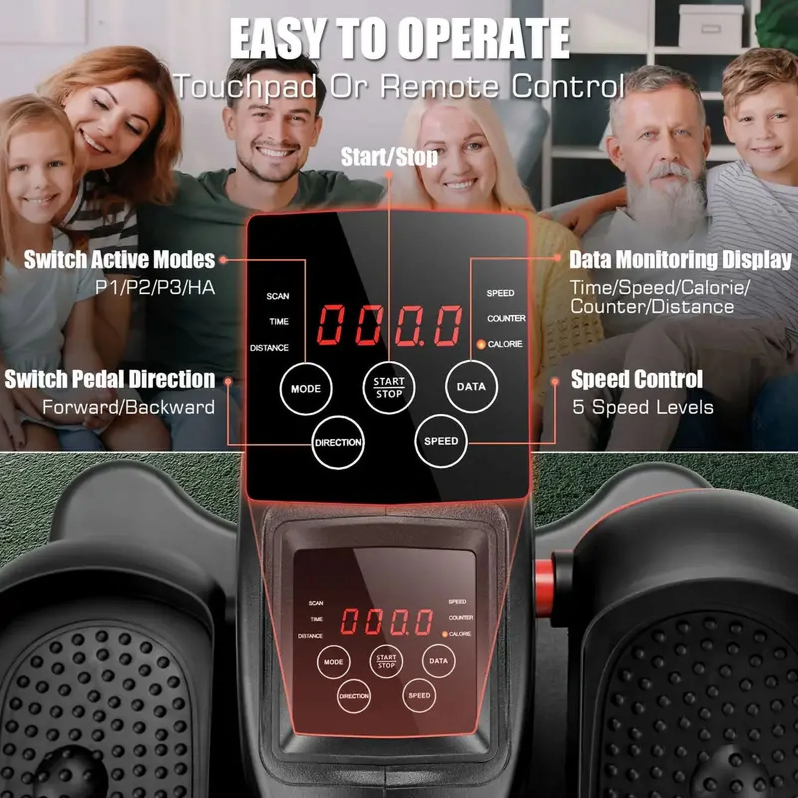 Under Desk Elliptical, Electric Seated Pedal Exerciser, Quiet & Compact Mini Ellipse Leg Exerciser with Display Monitor, Remote Control and 5 Adjustable Speeds, Elliptical Machine for Home