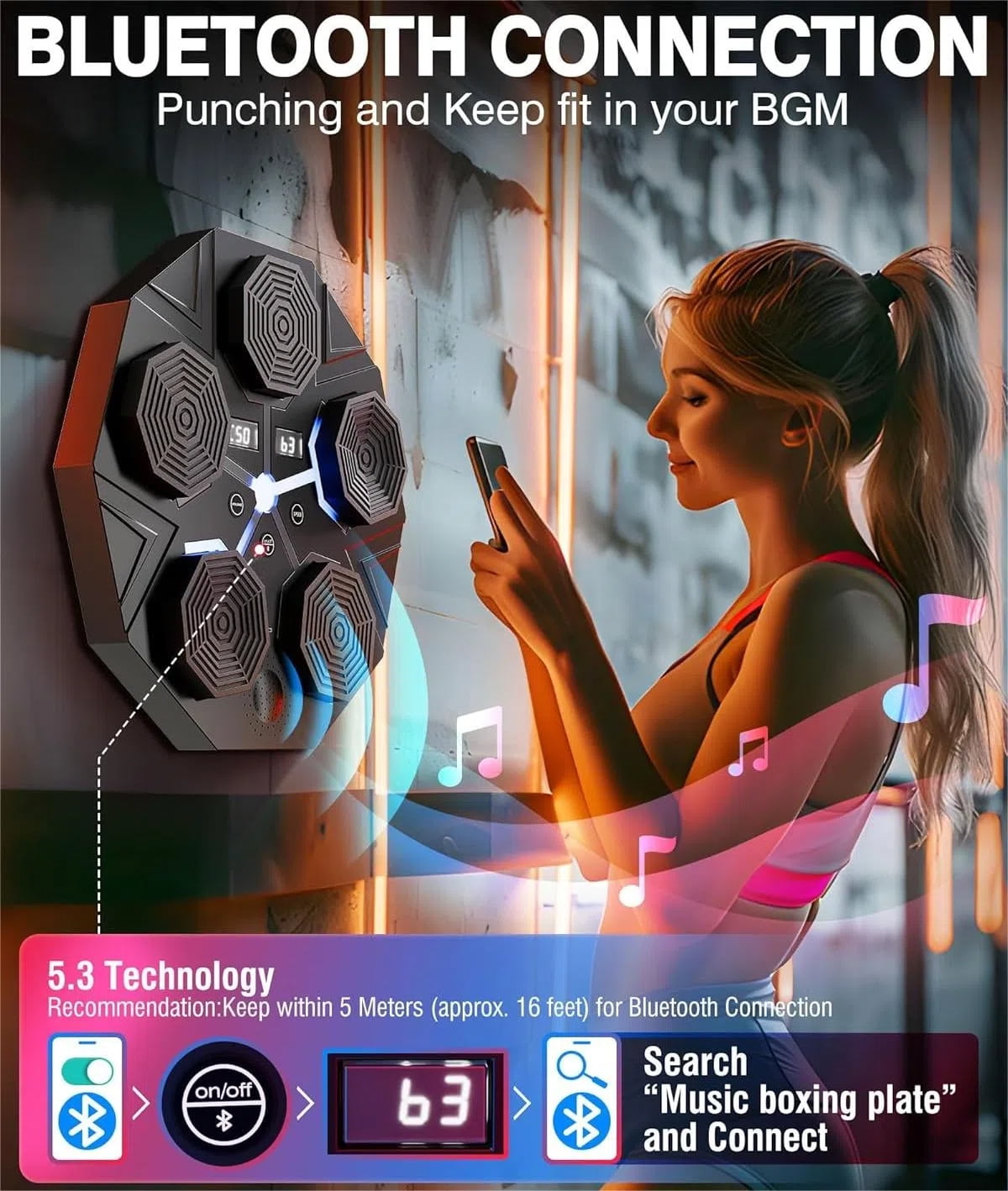 $85.99Original price was: $85.99.$31.73Current price is: $31.73.Boxing Wall Target with Boxing Gloves, Smart Display Screen & Bluetooth Connectivity. Bluetooth-compatible audio for instant music streaming and dynamic LED strike points for enhanced reaction training. Perfect for Kids and Adults Elevate your boxing training with our high-tech, wall-mounted boxing target. Designed for durability and versatile training, this equipment is a must-have for anyone looking to boost their agility, strength, and reaction times. Durable Construction Crafted from PU+ABS, our boxing machine can endure impacts up to 500 lbs, ensuring you can strike with full force. Smart Bluetooth Connectivity Connect to our mobile app via Bluetooth to track your punch speed, power, and combos. Enjoy personalized music rhythms that change with your performance, making each workout exhilarating. Enhances Athletic Performance Improve your fitness, cognitive skills, and agility. This equipment boosts reaction time, attacking capability, stamina, agility, and power. Easy Installation & Adjustable Height Set up is a breeze with the included sticker, and the adjustable height makes it suitable for both adults, teens and kids, offering a customized boxing training experience at home. Multi-Purpose Use Ideal for boxing, general fitness, body shaping, and competitive training. Cultivate a regular exercise routine with this versatile punching pad. Specification: Recommended Age: 6 years and above Item Type: Music Boxing Machine Material: PU+ABS Color: Black Size: (18.11 x 16.53 x 3.54) inches Battery: built-in 500mAh rechargeable lithium battery Features include Bluetooth-compatible audio for instant music streaming and dynamic LED strike points for enhanced reaction training. Please Note: The actual color may vary slightly from the pictures due to differences in monitor settings and lighting. Size may vary slightly. Package List: 1 x Smart Music Boxing Target 2 x Boxing Gloves 1 x User Manual 1 x USB Cable 2 x Adhesive Strips