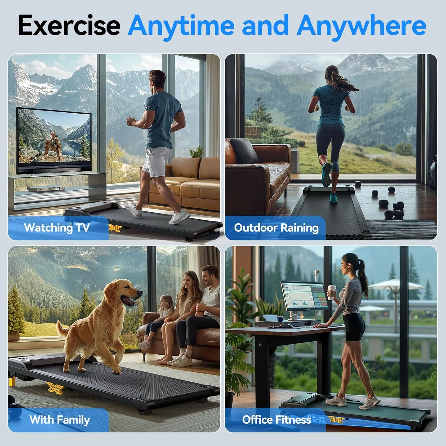$249.39UREVO Folding Treadmill, 2.25HP Portable Mini Treadmills for Home Office, Compact Threadmill with 12 HIIT Modes, LCD Display, 265 lbs Capacity ABOUT BRAND: UREVO is a well-known brand in the fitness industry, with its treadmills at the forefront. UREVO is dedicated to researching and manufacturing high-quality, durable, user-friendly, and space-efficient treadmills, enabling our customers to effortlessly enjoy the pleasure of exercise at home/office. ● 12 Types of HIIT – Globally Acknowledged as the Most Effective Fat Loss Method This folding treadmill brings you the ultimate in fat reduction with our 12 specialized HIIT running settings. HIIT is globally recognized as the fat-blasting powerhouse and the core of this treadmill. These carefully crafted presets provide you with a variety of training plans to choose from, ensuring you can customize your workout to meet your specific needs. Additionally, our adjustable LCD display keeps you in the know about key workout metrics such as speed, time, distance, and calorie burn at any time. ● Convenient, Space-Saving Folding Design The one-step folding feature offers unparalleled convenience. Our foldable treadmill effortlessly shrinks into a compact package measuring 48x26x5.5 inches (L x W x H). This stylish design allows you to effortlessly stow it under your bed, sofa, or against the wall. The latest mini treadmill is now more compact and user-friendly than ever, weighing only 22.5 kg. ● Enhanced Performance for an Authentic Outdoor Experience Our walking treadmill has 2.25 HP motor delivers an authentic outdoor running experience. With a speed range from 0.6 to 6.2 MPH, it ensures stable operation even with a maximum weight of 265 pounds. What’s more, the motor runs quietly, so it won’t disturb those around you. The five-layer anti-slip running belt is not only durable but exceptionally quiet. Thanks to our integrated compression technology, the belt offers a seamless and smooth experience. ● Spacious Running Area for the Whole Family and Pets to Enjoy Our running treadmill features a spacious 16-inch non-slip running belt, ensuring a safer and more comfortable running experience. It’s not just your under desks treadmill; it’s a walking pad for the whole family, including your beloved pets. This means you, your family, and your furry friends can embark on a fitness journey together, easily achieving your fitness goals on the running machine. ● Easy To Assemble Quipped with our best technology, UREVO Portable Folding treadmill is designed to be sturdy, and it has a compact Treadmill, so the flat treadmill can be used in a small space. And the hand rail can be folded up, and is very simple to be stored up, the wheels help you move anywhere with ease, and fit size saves your limited space.