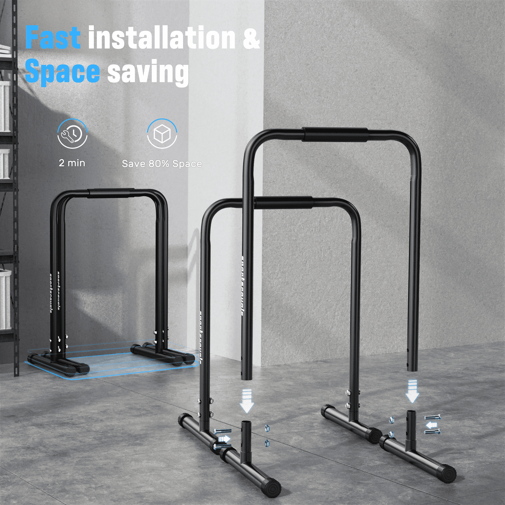 $137.59Sportsroyals Dip Bar Relife Sports Dip Bar allowing for multiple exercises from a variety of angles, fully exercising every muscle of yours.The dip bar is made of heavy-duty steel which is durable for a long service usage. Practical fitness equipment for home gym.2 parallettes bars can be stacked to store, will not take up too much space. Suitable for daily workouts at home or in the office.