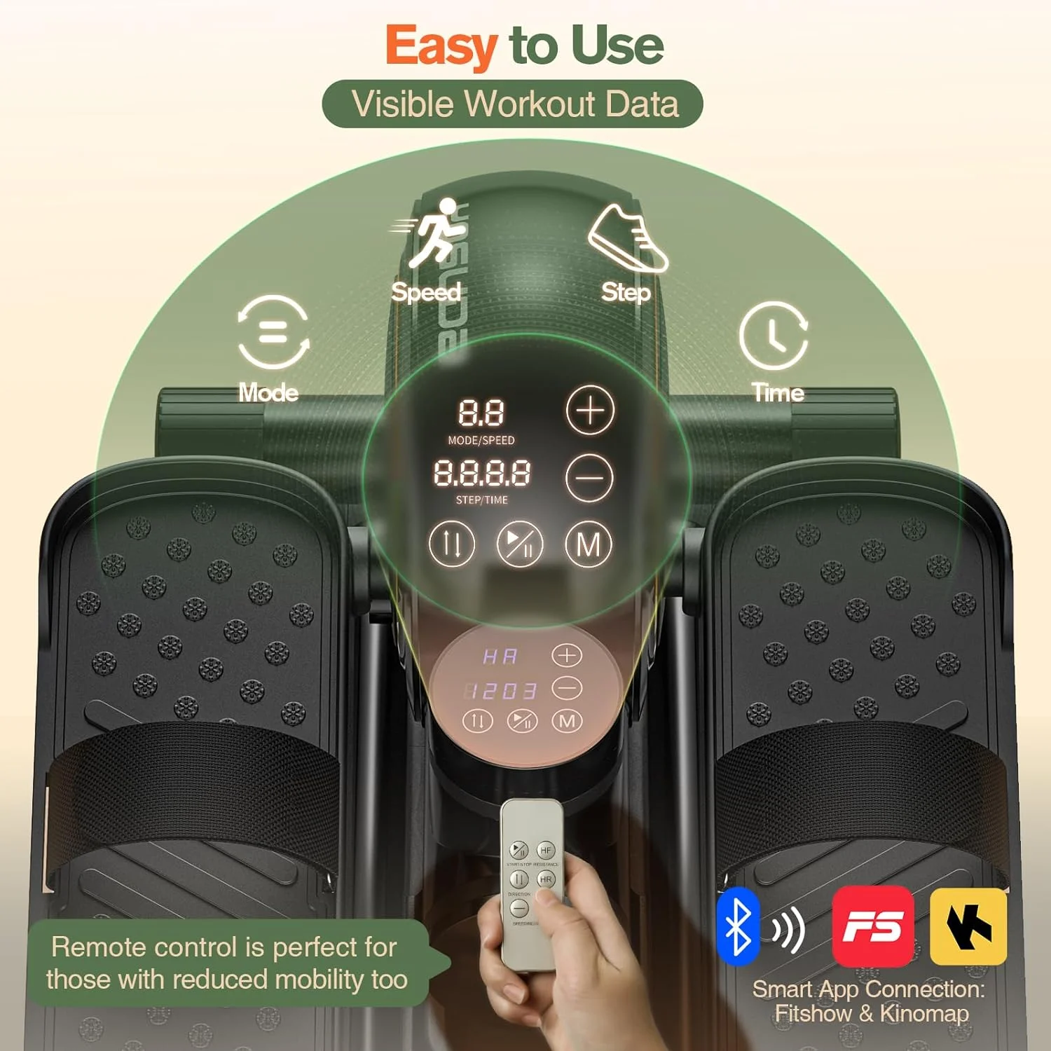 UPGO Under Desk Ellipticals Electric, Elipse Leg Exerciser for Seniors Fully Assembled, Seated Pedal Exerciser with Remote Control & Non-slip Mat & Foot Straps Band
