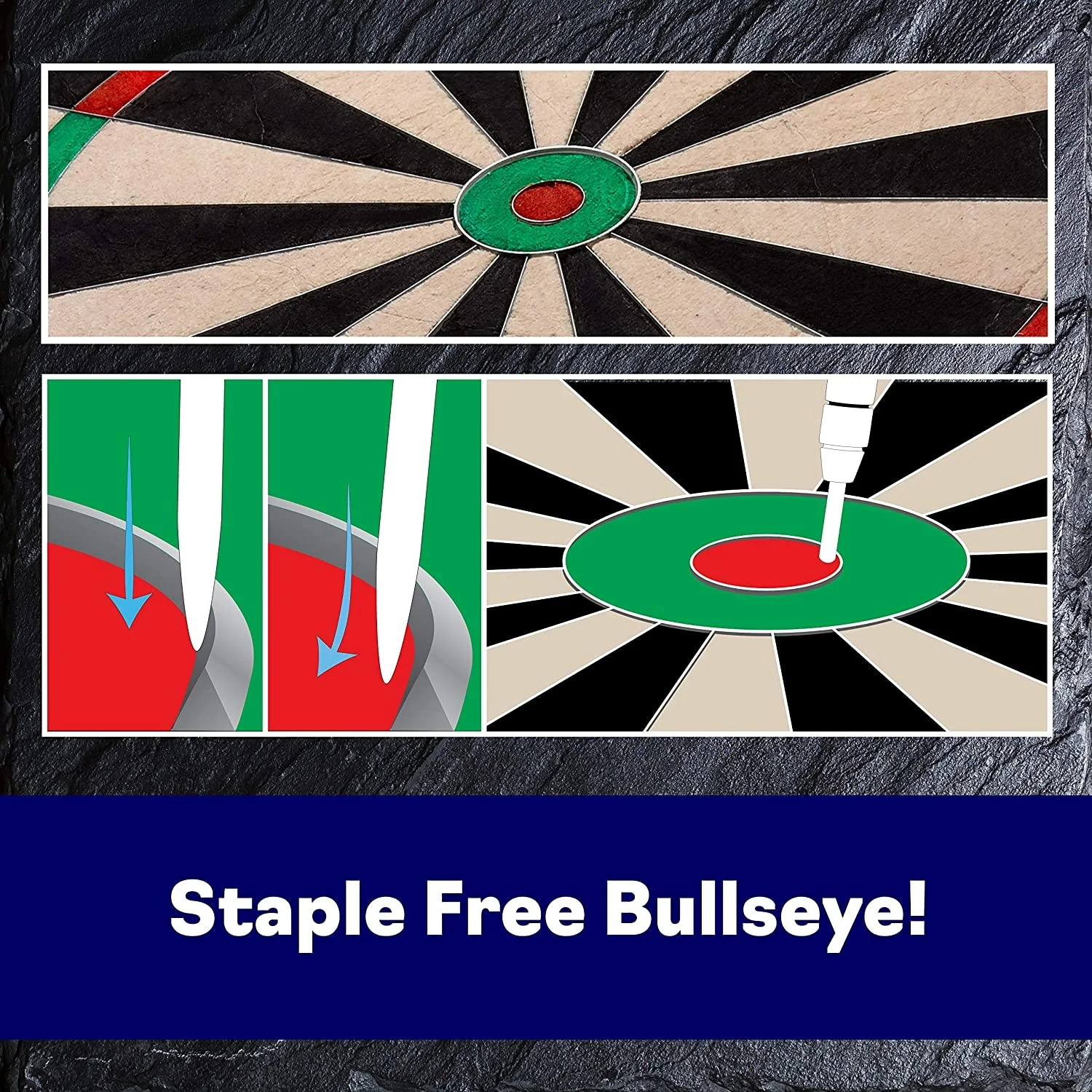 $58.58Practice your aim with the VIPER Razorback Bristle Dart Board. Constructed from self-healing sisal bristle fibers, this dartboard is extremely durable. The staple-free spider uses razor-thin galvanized wires, which helps prevent darts from bouncing off the board and keeps you from losing points. Measuring at 18 inches in diameter by 1.50-inches deep, this dartboard is the official tournament size. You and your friends can practice for a local tournament, or you can enjoy a casual game during halftime. You can use steel tip or soft tip darts on this versatile dartboard. The VIPER Razorback Bristle Dart Board has a movable number ring, increasing the dartboard’s lifespan. Mounting hardware is also included, so you can get set up and start playing darts in next to no time.