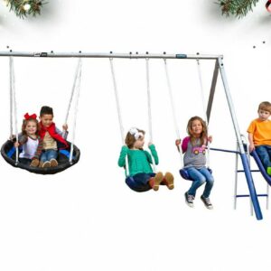 XDP Recreation Super Disc Steel Swing Set with Slide, Disc Swing, and 2 Swings