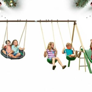 XDP Recreation Super Disc Steel Swing Set with Slide, Disc Swing, and 2 Swings
