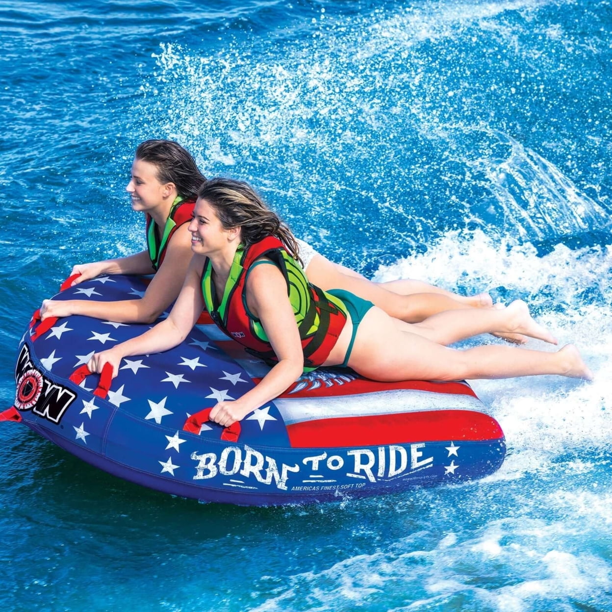 $171.99WOW builds America’s finest towables for those who were “Born to Ride”. This new ULTRA SOFT TOP cover makes for a soft landing everywhere your body touches! Deck tubes may be a basic style of tube but the Born to Ride is anything but basic. Patriotic graphics are sure to make you feel proud on the water, and obviously the best tube to have for the Fourth of July. Ride it to catch the waves or lay it on the beach to catch the rays. The Born to Ride 2P Towable can be used by up to 2 riders. Be brave and feel free while riding on this Soft Top Towable by WOW.