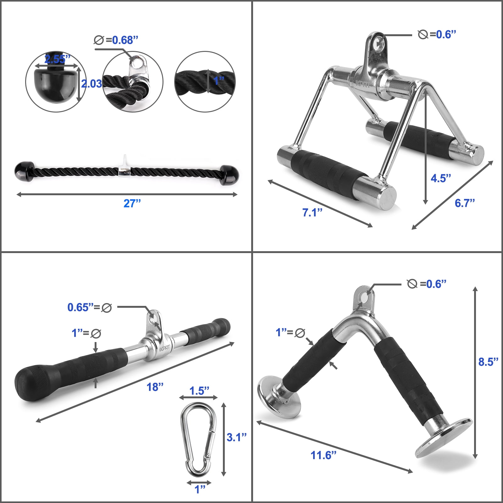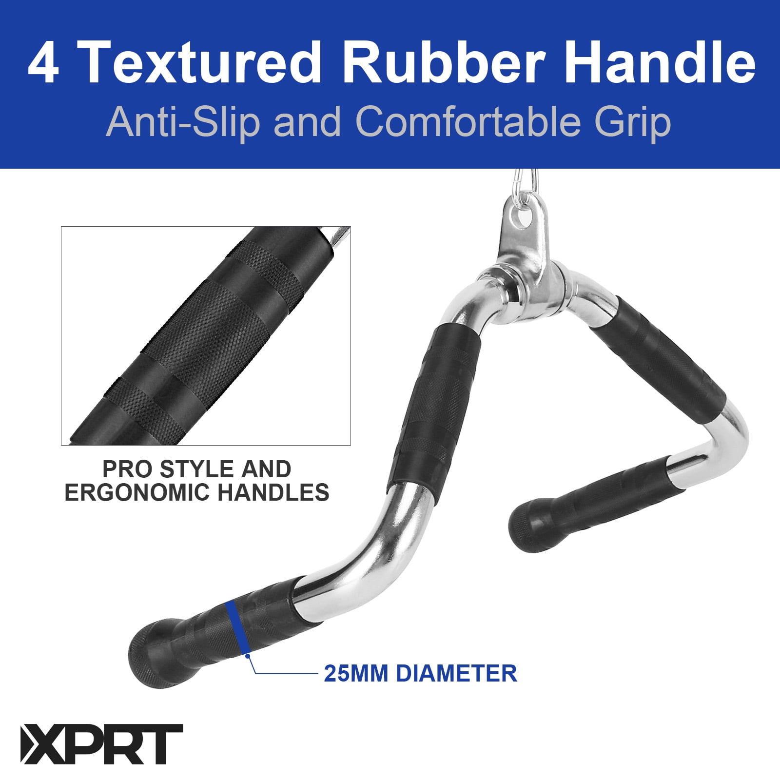 $42.99XPRT Fitness LAT Pull Down Cable Attachments variations are a great tool that maximizes back development and increases LAT muscle strength and pulling strength. The overhead pull-down exercises from the wider overhand grip or underhand grips of these various LAT attachments work differently and angles to grow lats in size and give a more muscular and wider back. It can add great variety to your shoulder, back, and lats strength training—great choices for beginners and professional athletes.