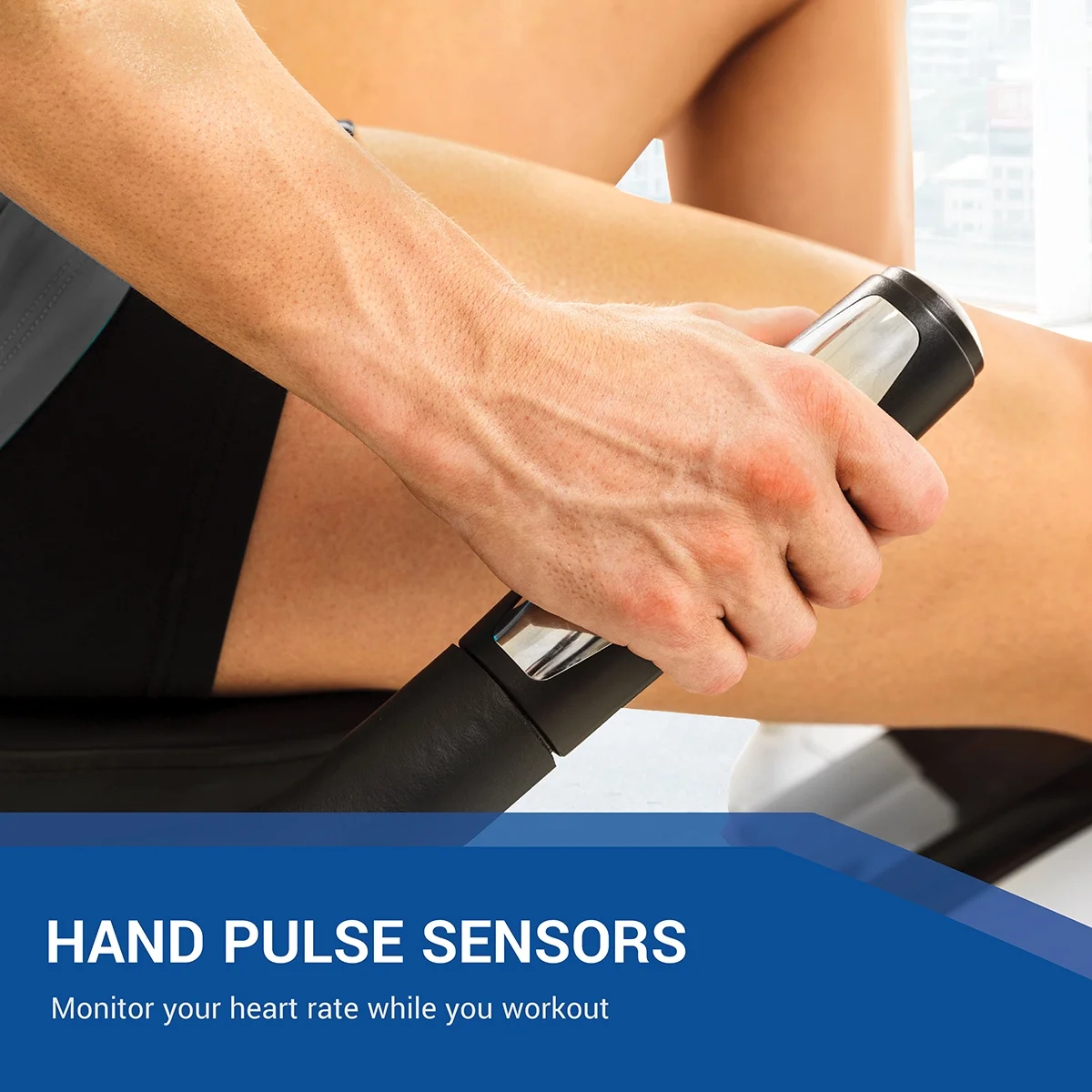 $268.76Original price was: $268.76.$190.05Current price is: $190.05.The XTERRA SB150 Recumbent Bike provides a smooth lower-body workout in a step-through solid frame design with advanced console features. The small footprint maximizes your use of space while providing a workout that is low-impact and effective. With a smooth belt drive system, friction-free magnetic resistance, and easy adjust seat slide, the SB150 Recumbent Bike delivers a quiet and effective workout. The advanced console features a large 3.65” easy to read blue backlit LCD screen that displays everything from speed and distance to calories and heart rate. The 12 pre-set, 4 custom, 1 body fat, and 5 heart rate programs with 24 levels of resistance are sure to challenge users of all fitness levels. When not in use easily move the bike out of the way with built in transport wheels.