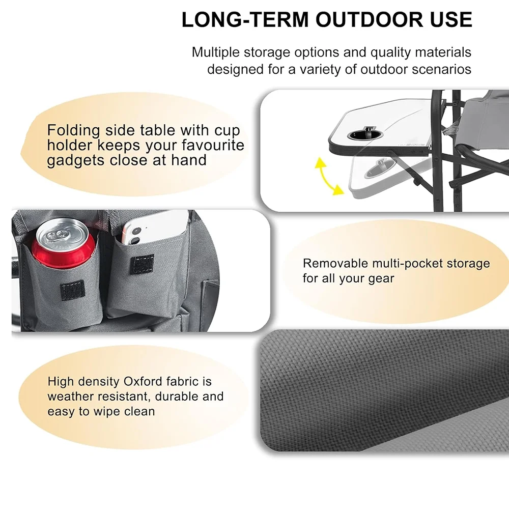 XXL Oversized Directors Chairs Support to 600 Lbs, Heavy Duty Camping Chairs with Foldable Side Table, Detachable Side Pocket, Folding Outdoor Chair for Outside,Lawn,Beach,Fishing(Red)