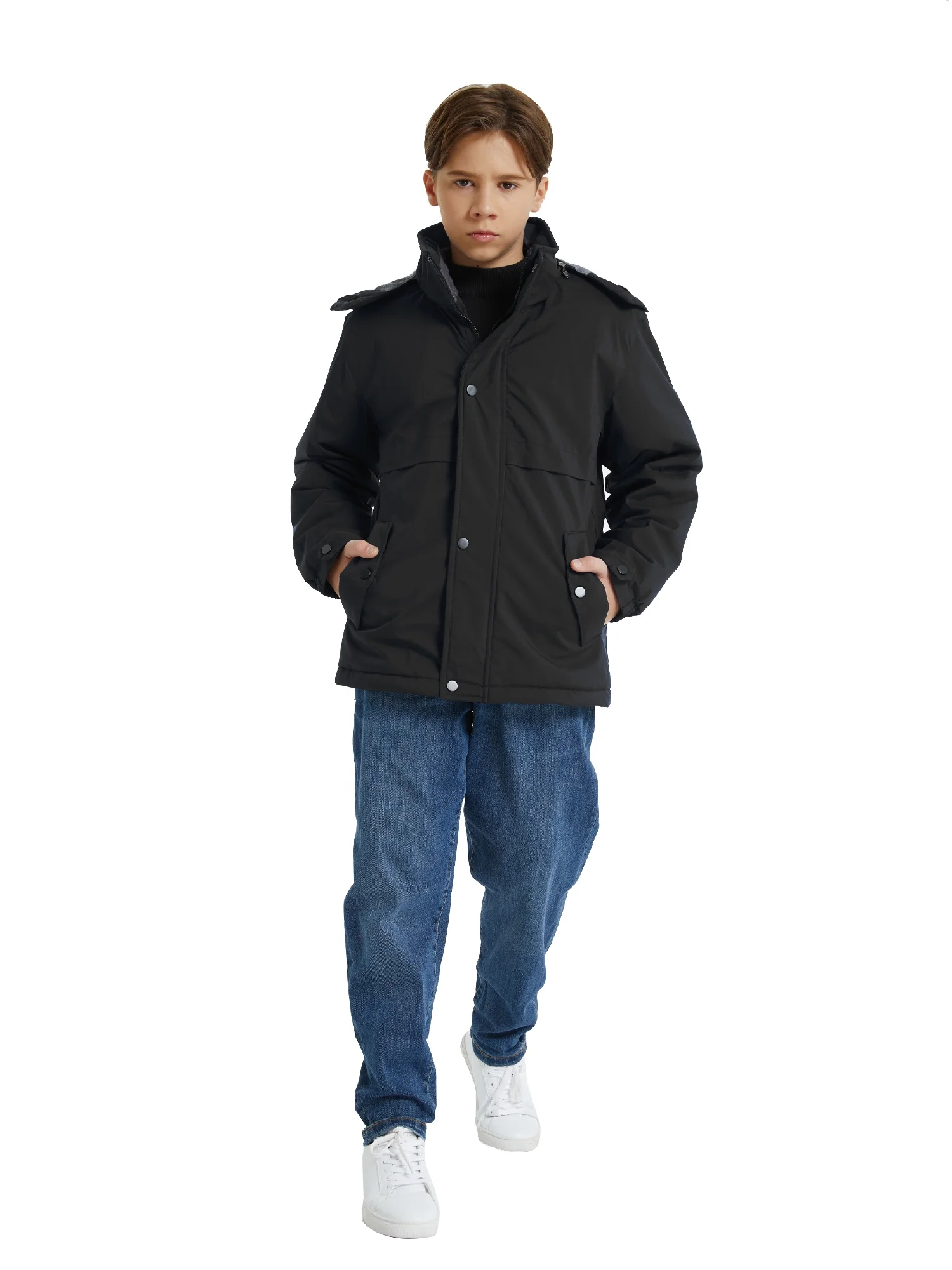 ZSHOW Boy’s Winter Jacket Insulated Ski Coat Hooded Winter Outerwear Coat Black 14/16