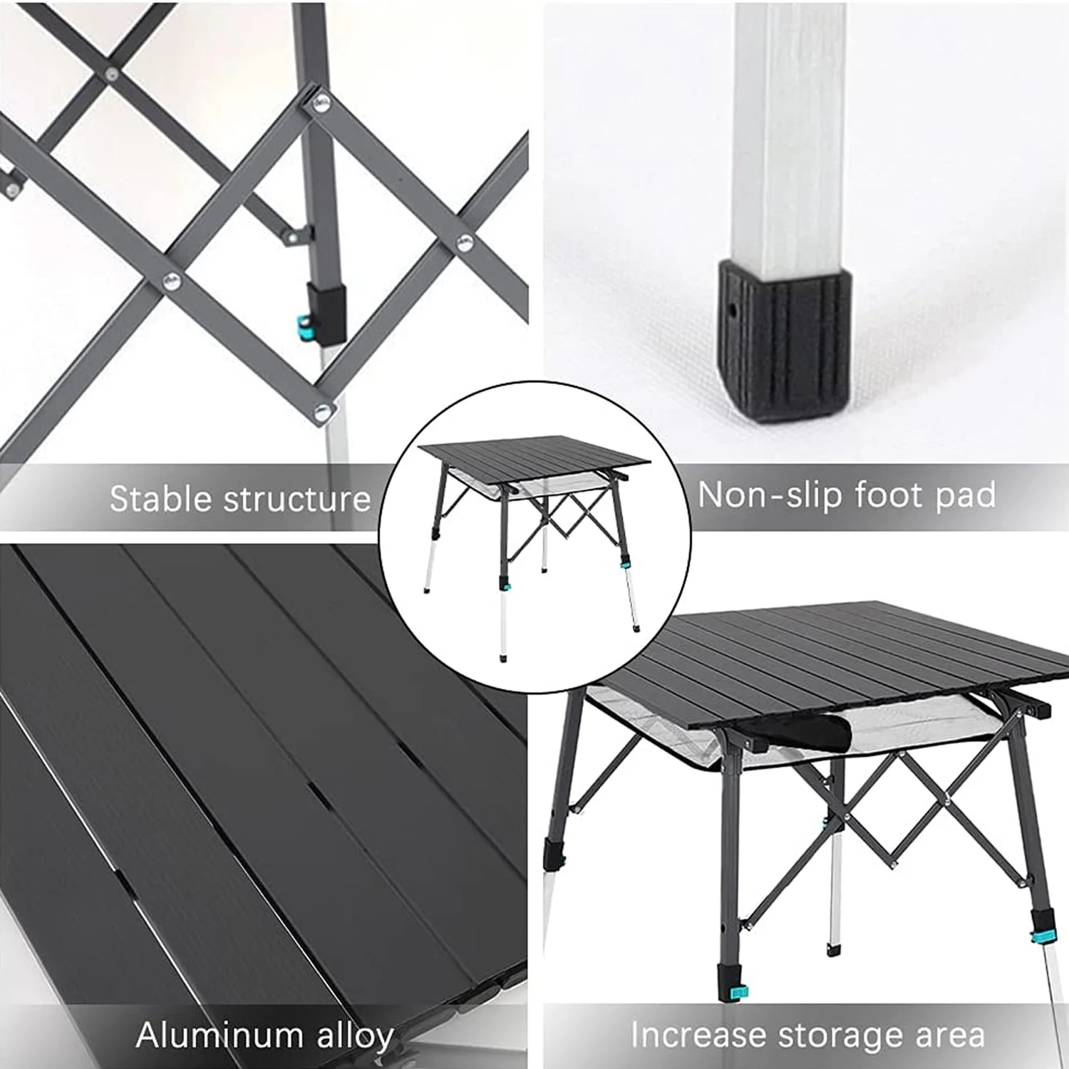 Zzbiqs Roll Top Camping Table with Aluminum Legs , Portable Folding Adjustable Height , 27.5Lx27.5Wx27.5H, Silver