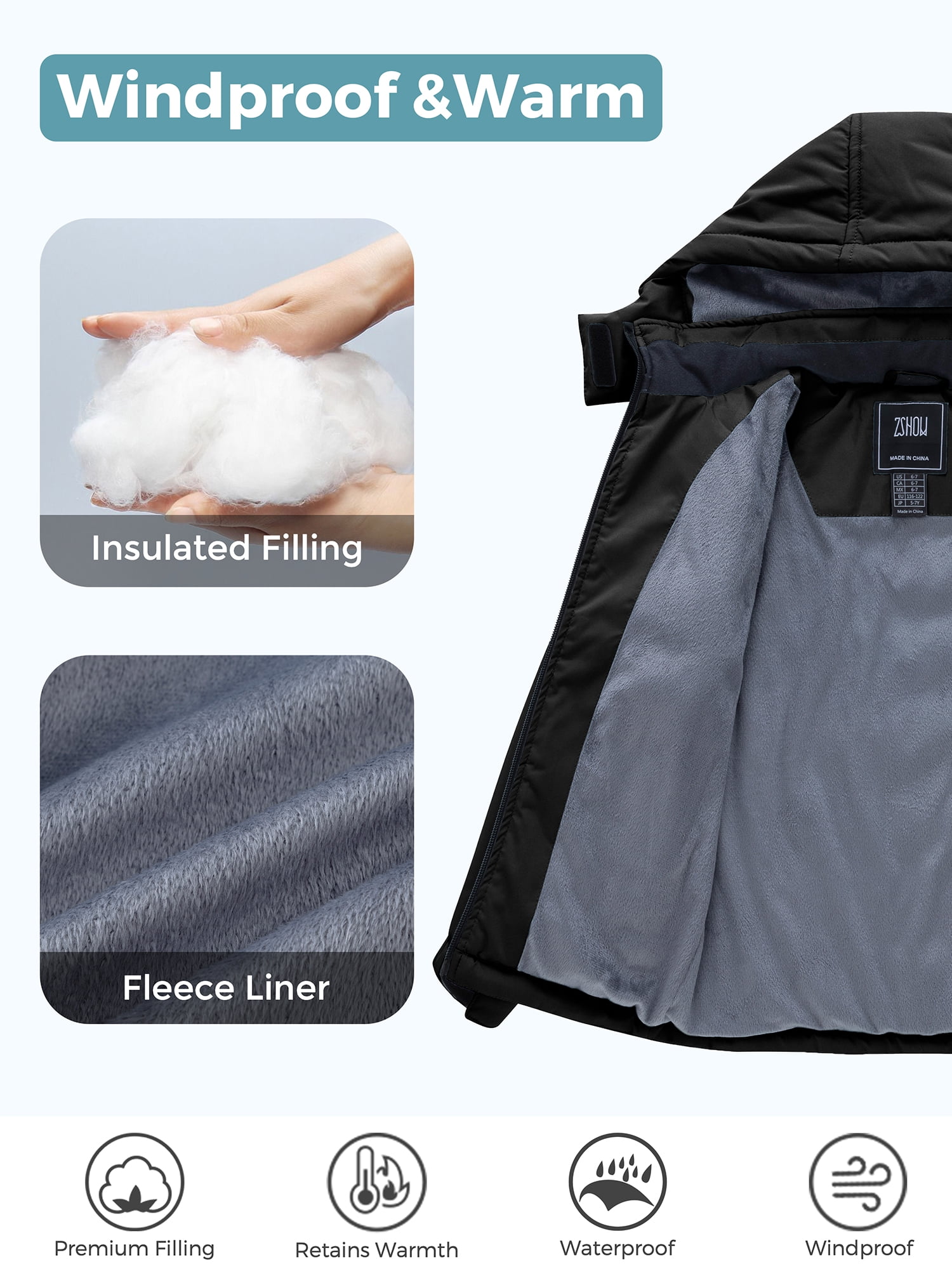 $70.50Original price was: $70.50.$51.58Current price is: $51.58.Zshow boys’ waterproof ski jacket is the ideal winter parka coat for your child. This kids’ ski jacket is perfect for boys who love to play outside in the winter. It’s versatile and stylish, with a sleek black color that goes with anything. The waterproof snow jacket’s waterproof and windproof design means your child will stay dry and warm even in harsh weather. The removable hood provides an extra layer of protection, and the elastic and adjustable cuffs keep warmth in and cold air out. With its many pockets and reflective elements, this warm hooded winter jacket is both practical and safe. Get your child ready for the winter season with this high-quality jacket.