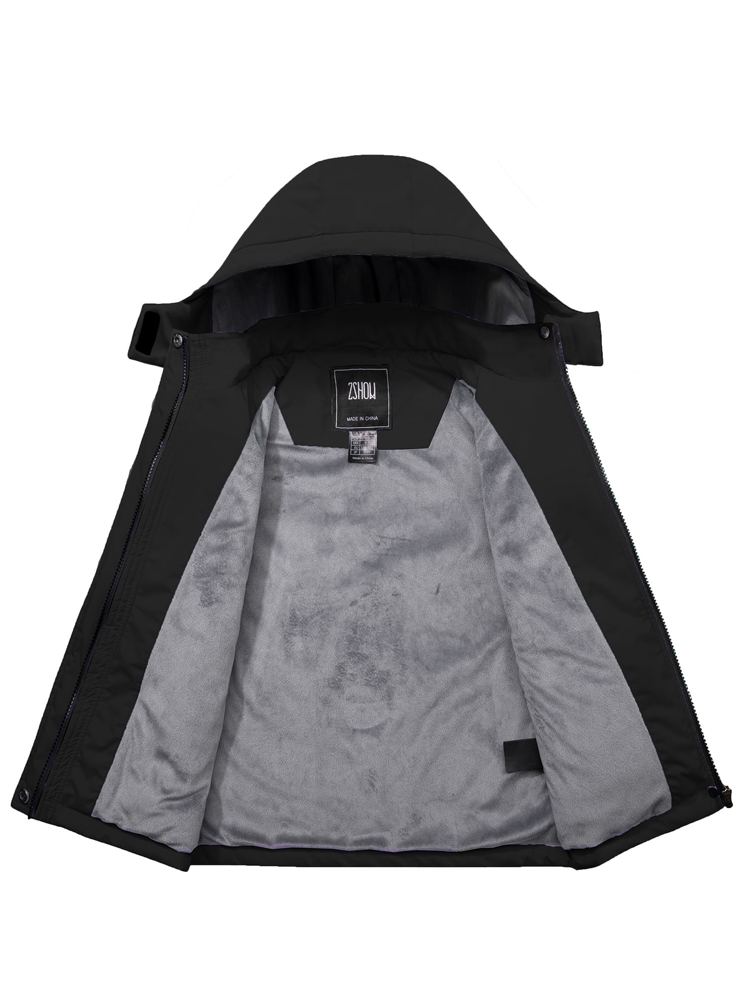 ZSHOW Girls’ Waterproof Ski Jacket Soft Fleece Lined Hooded Winter Outerwear Coat(Black,14-16)