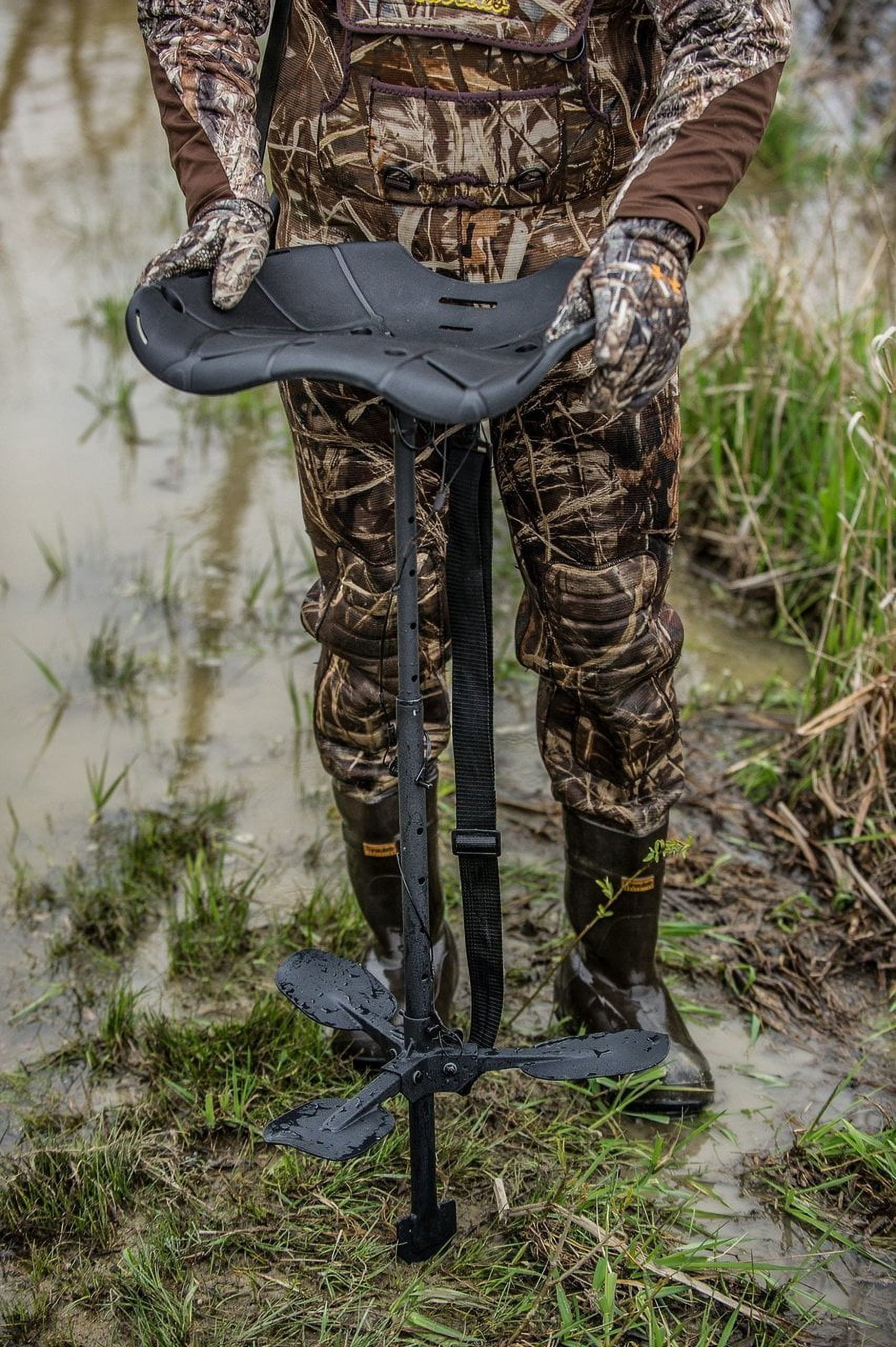 $65.51The ultimate Waterfowl seat! The AVIAN X® Ergo Marsh Seat is an ergonomic design built towards a new level of comfort while waiting in the marsh. Flex Comfort Technology bends and conforms to your body size to add spinal and lower back support. Fold out lateral mud flap supports create a rock solid and stable seat. User has the ability to adjust the seat height up and down creating an even more customized fit in the field. This comfortable seat rotates left and right. An adjustable carry sling is included for added ease when transporting from place to place.
