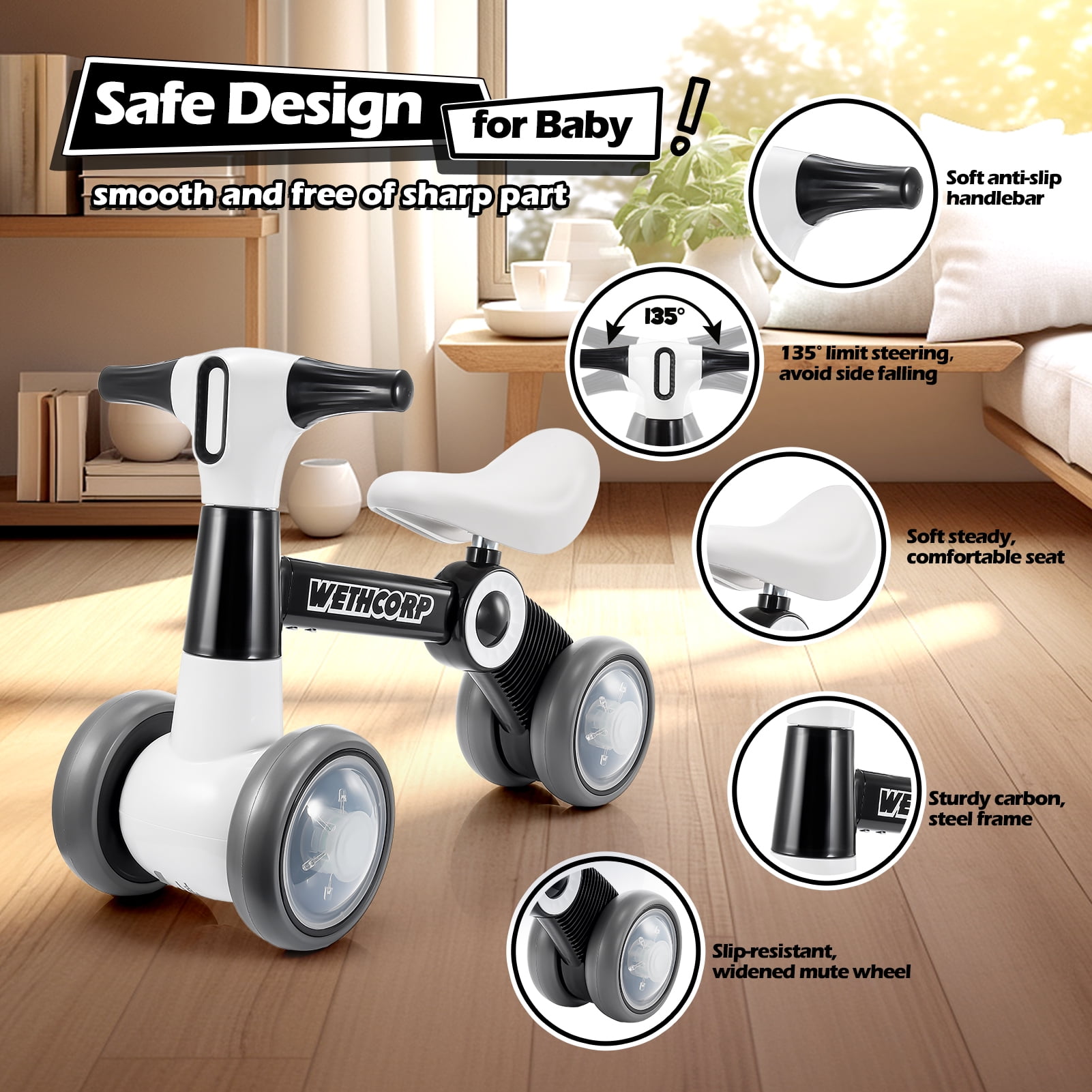 $37.83Light-up baby balance bike is designed for 1 and 2 year old toddlers. It helps baby to practice and master the ability of balance, steering, hand-eye coordination, and promote the development of legs.4 wheels balance bike is the great toys for 1-3 year old toddlers to learn to walk and ride a bike. We add light up device on 4 wheels, just turn the wheels and lighting. This will surely make your baby more excited to ride the balance bike.