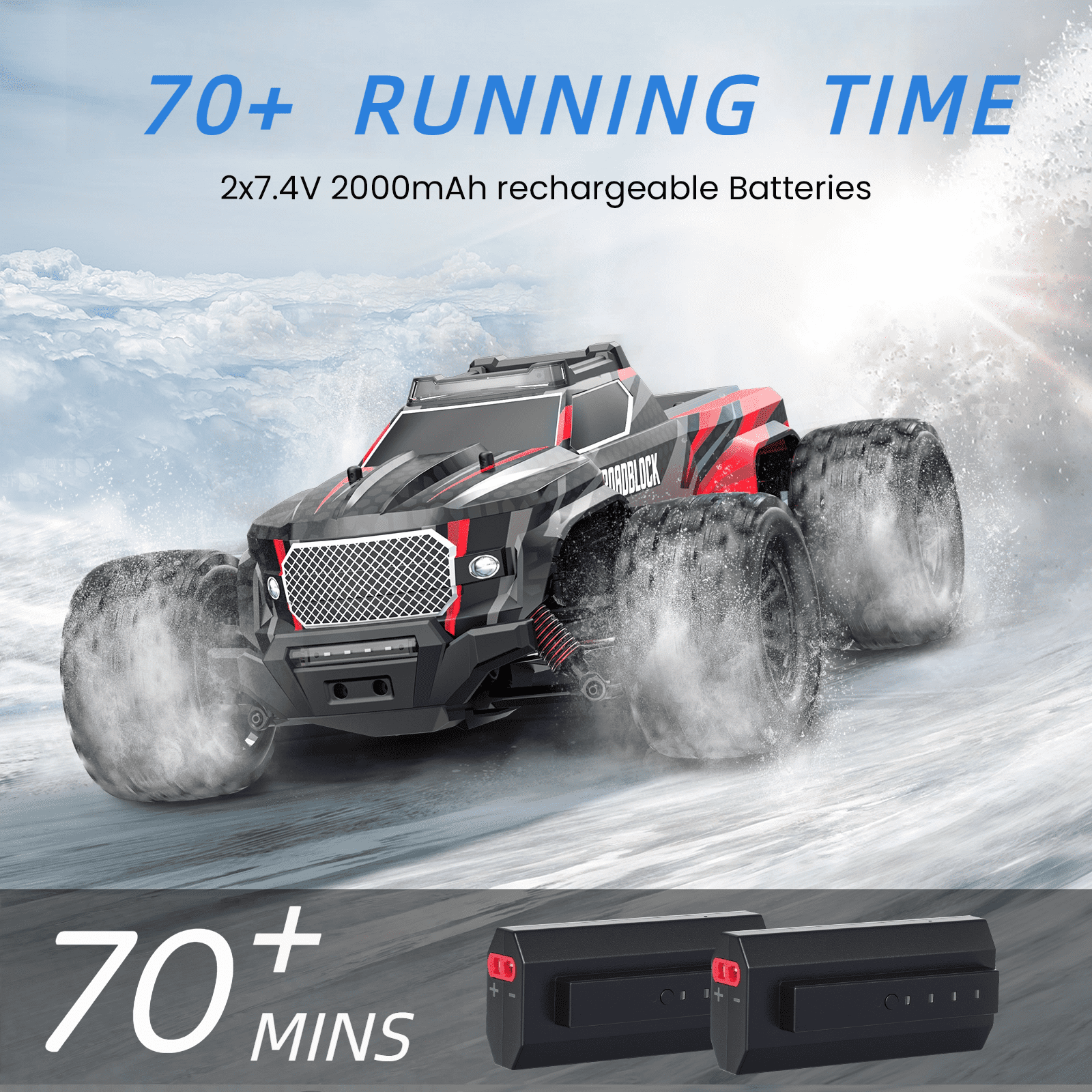 $159.87Original price was: $159.87.$85.13Current price is: $85.13.This all terrain rc truck uses a durable and fast 390 motor with a speed of up to 37+MPH(55+KM/H), making you more competitive in racing. allowing you to enjoy longer use time, providing up to 40 minutes of fun.you can easily Drive on all terrains such as rocks, sand, grass, concrete roads, etc., This outdoor remote control car providing a real off-road racing experience for all lovers. WHAT’S IN THE BOX? Color box packaging*1 Remote control car*1 Remote control*1 Instruction manual*1 7.4V2000mAh module battery*2 USB protected charging cable*1 Screwdriver*1 Wheel removal cross wrench*1