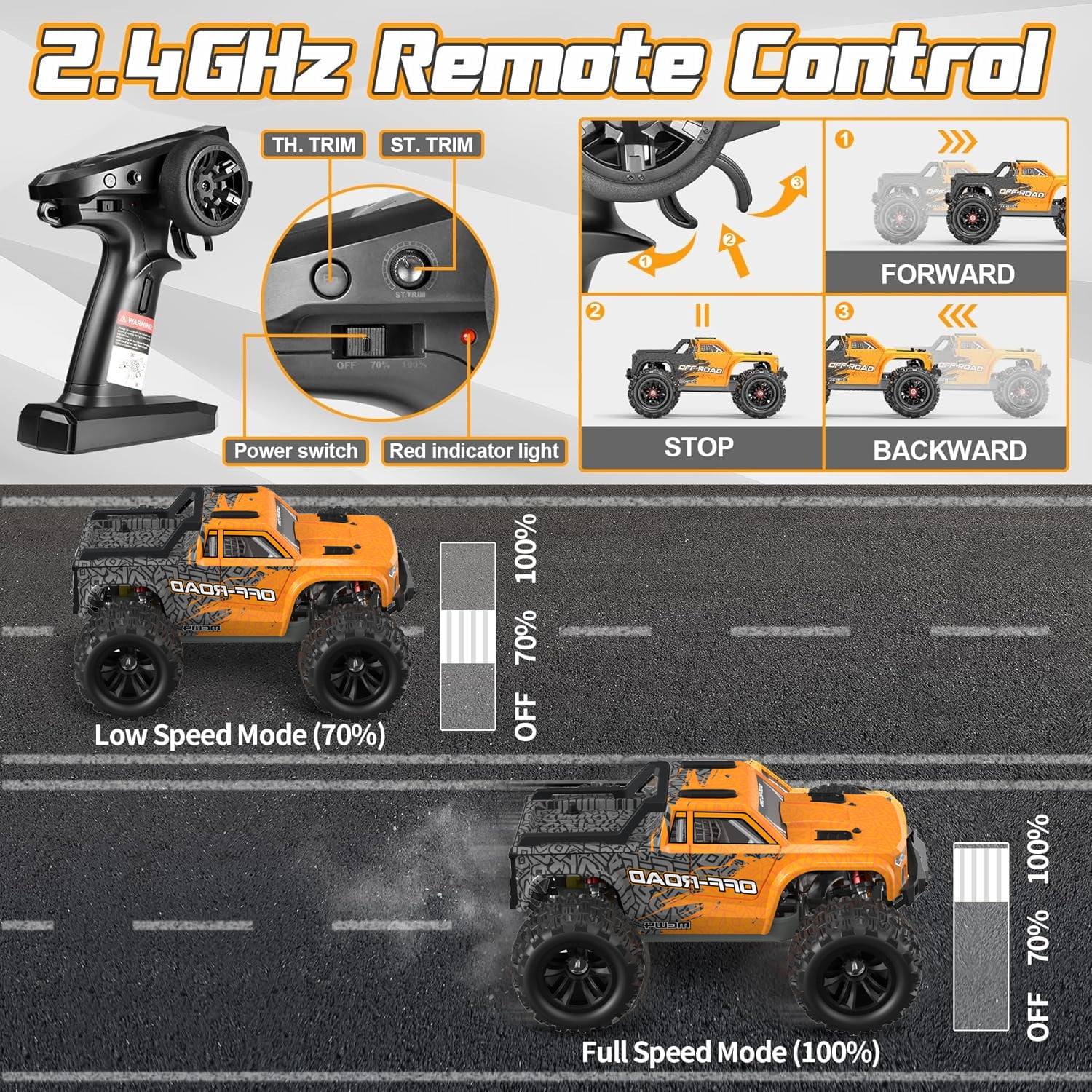 AUOSHI RC Car – 1:16 Remote Control Truck, 30MPH High-Speed 4WD Off-Road Car with 2 Rechargeable Batteries, 60 Min Playtime, LED Lights – Great Gift for Kids & Adults
