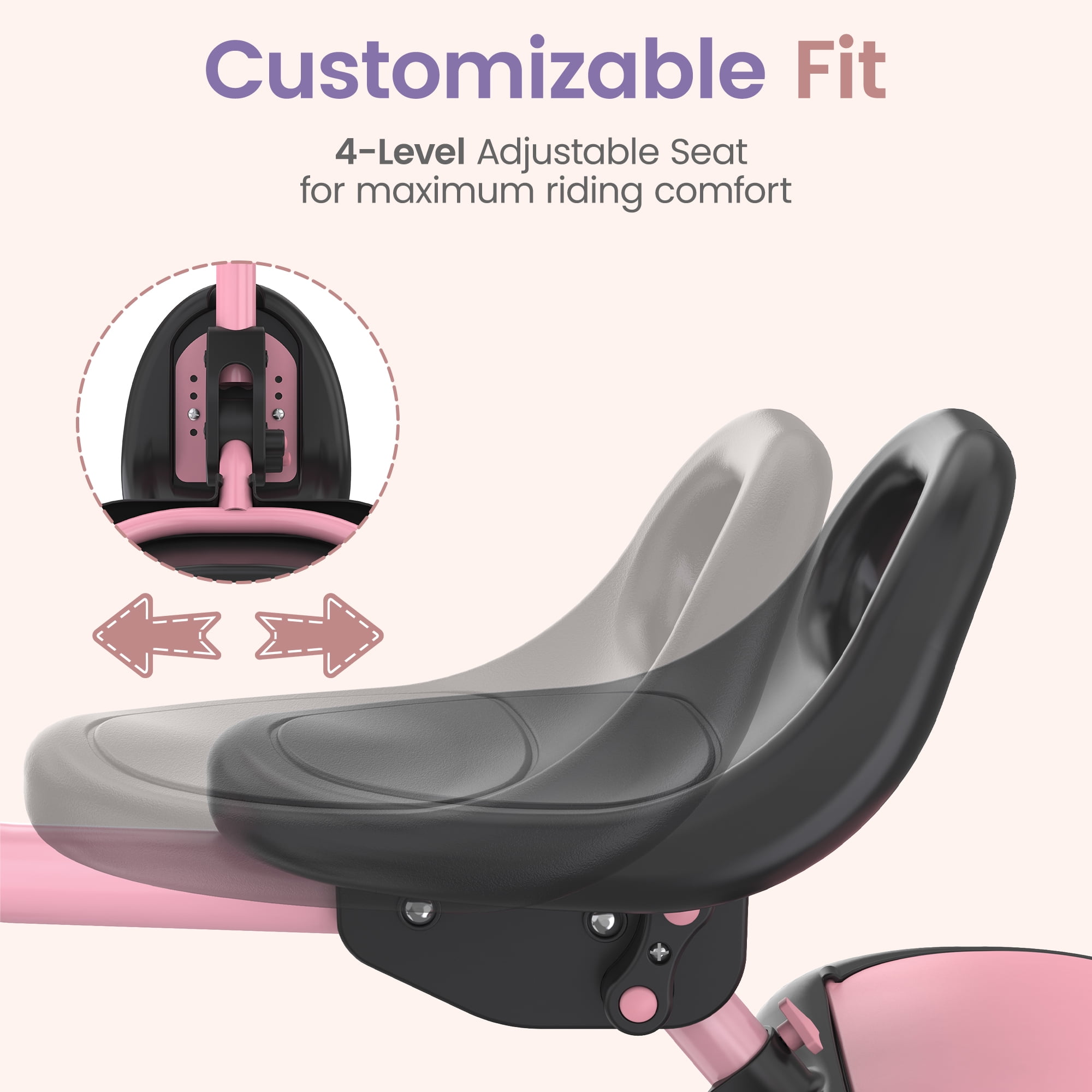 $44.71This toddler tricycle should be your little explorer’s first tricycle in childhood as it is built for beginners! This kid trike helps children ages 18 months to 5 years develop motor skills, balance and coordination from an early age. As your child grows, the seat can be adjusted back and forth to accommodate your child’s growth, meaning this kids tricycle can accompany your child through many stages of childhood. The EVA foam wheels provide a smooth ride both indoors and outdoors, while the stable triangular frame ensures that your child won’t roll over during the ride. In addition, this tricycle for toddlers also comes with a bike bell that can bring a lot of fun to the ride. This is an ideal gift for your baby on birthdays, Christmas or other special holidays. Besrey toddler trike will always be the best choice as your baby’s first bike! This unisex tricycle has a cute pink color for girls.