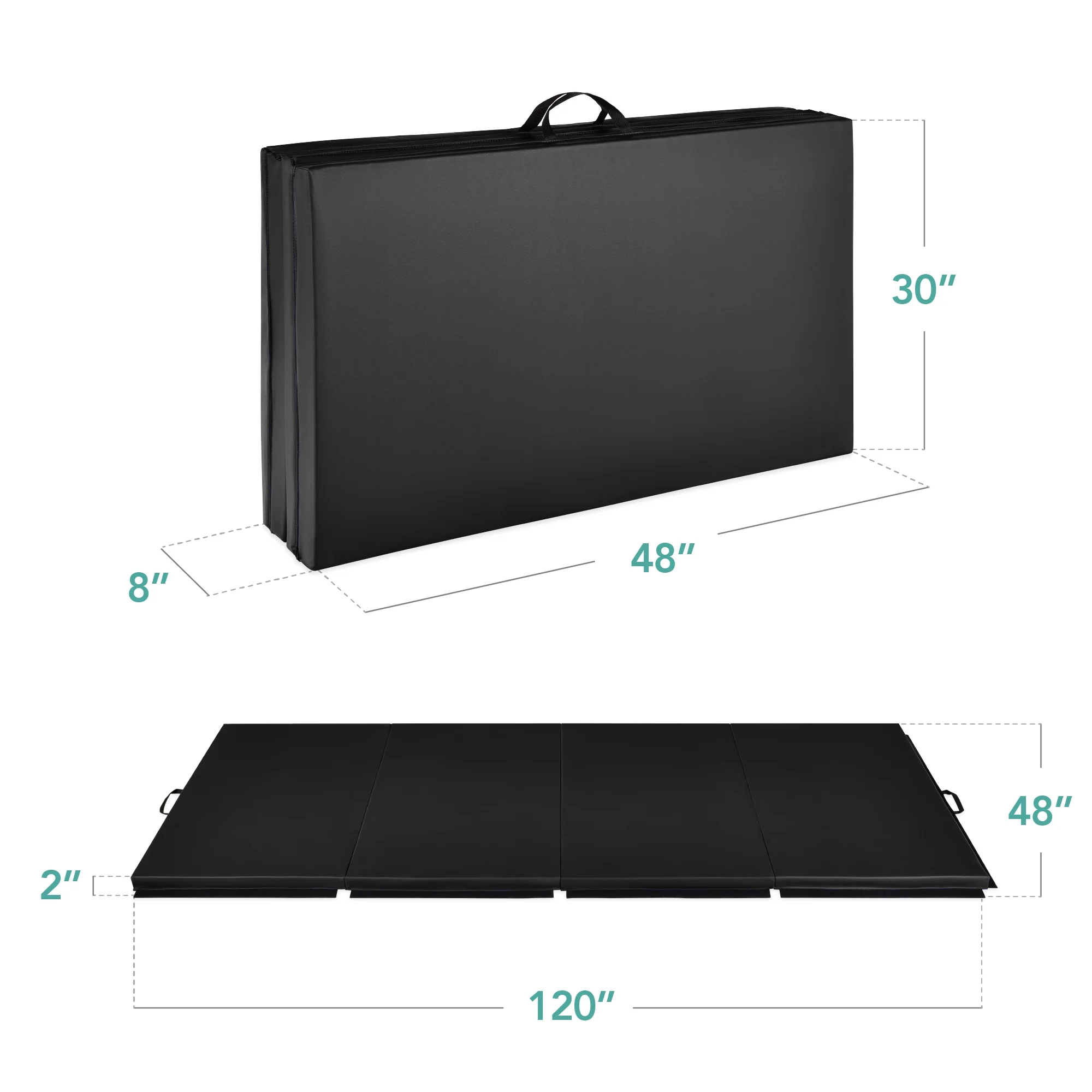 Best Choice Products 10ftx4ftx2in Folding Gym Mat 4-Panel Gymnastics Workout Floor Mats w/ Handles Black