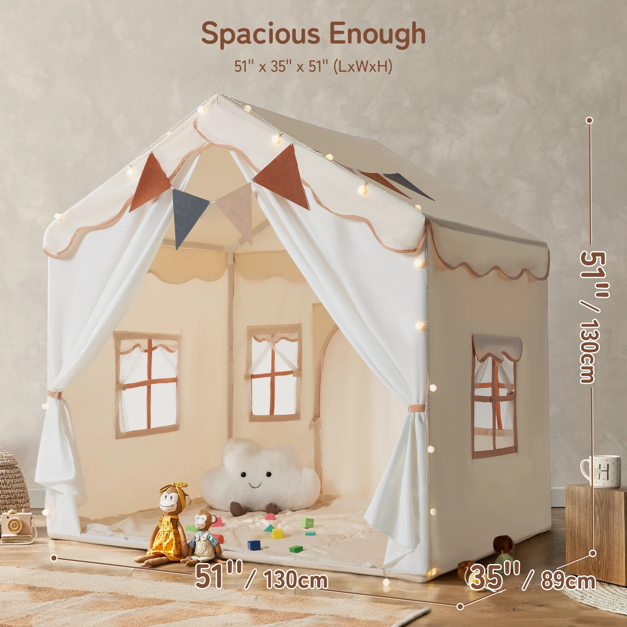 Besrey Toddler Playhouse for Boys and Girls,Kids Play Tent Indoor & Outdoor,Child Play Tent with Padded Mat and Lights,Beige