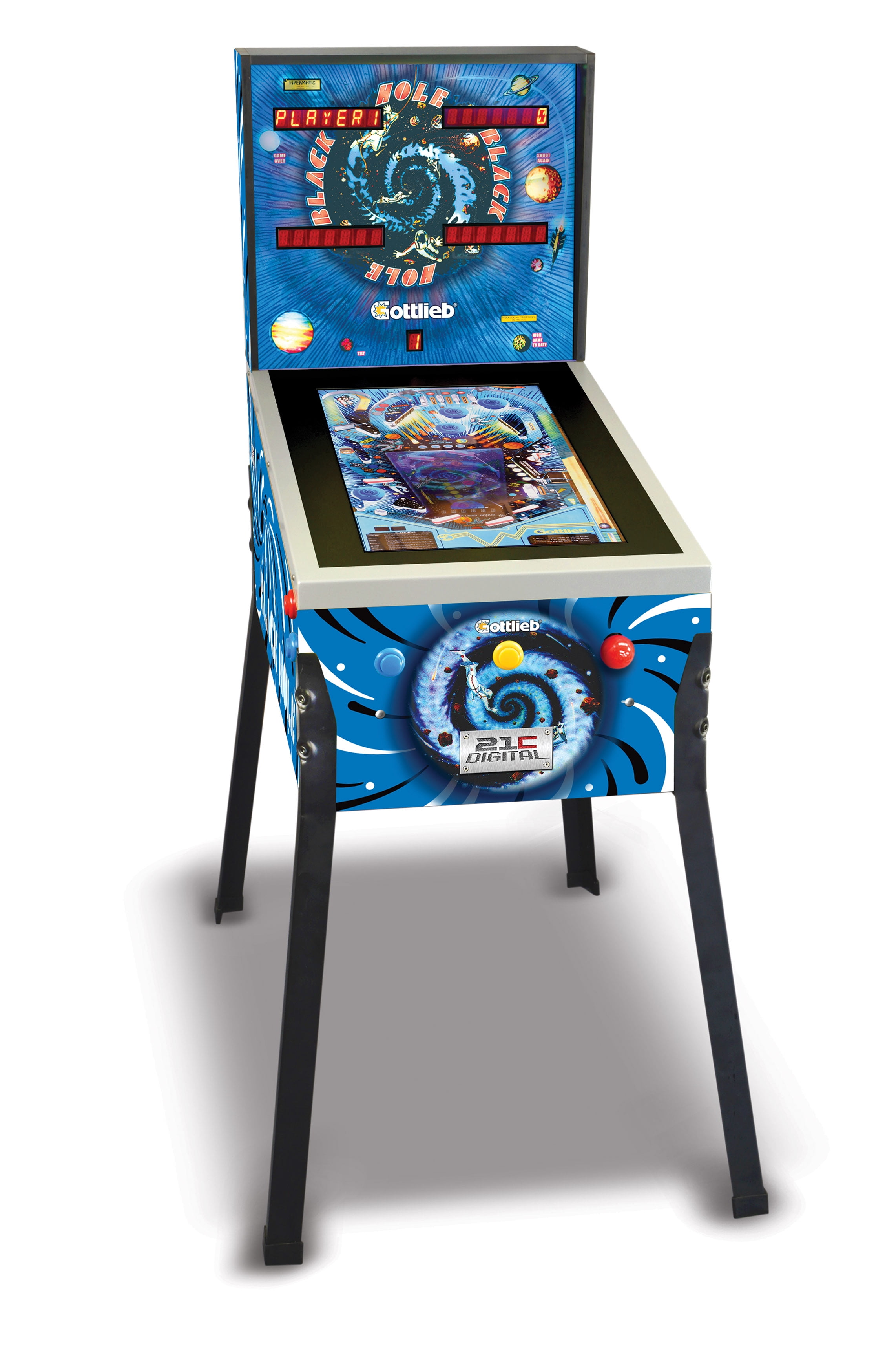 $429.143/4 Scale Electronic Digital Pinball Machine “Black Hole” Edition Real arcade game-play experience-realistic features including: All 3D technology, Individual Game Instructions on screen, Nudge/Tilt/Pause and Variable Sound and Brightness Control. Machine features Multiple Games per machine (12 Games) and all models allow up to Four players per game!