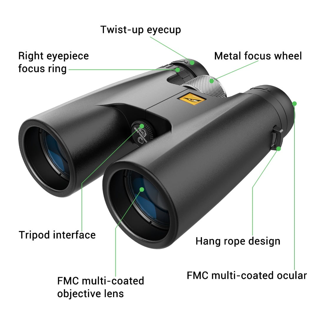 WATER AND FOGPROOF Hunters encounter all kinds of environments, and they need their optics to work without obstacle. Birds of Prey Optics Eagle HD 10x42mm binoculars are both waterproof, dustproof and fog-proof, so you get the clearest uninterrupted performance, every time.