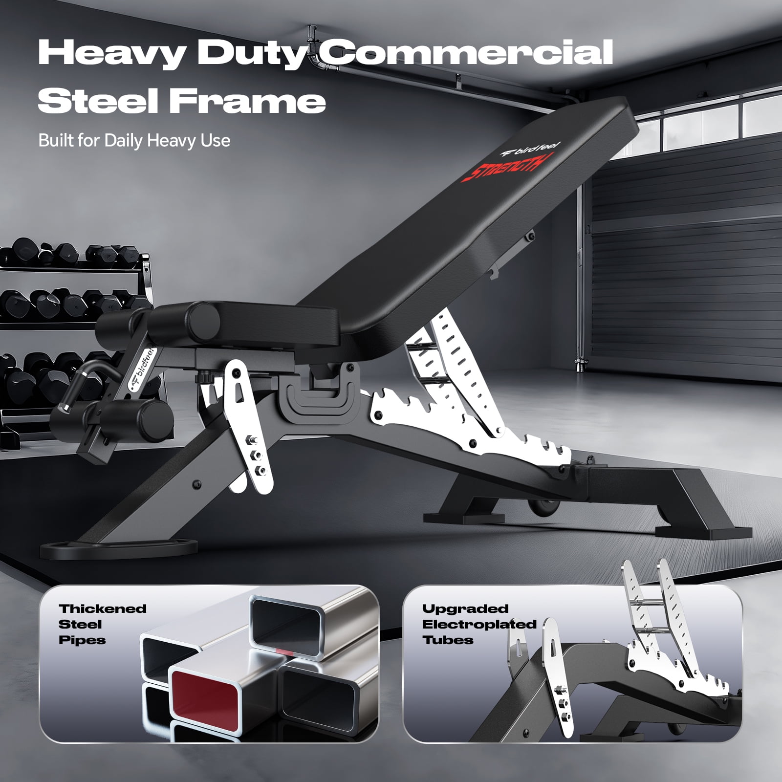 Birdfeel Commercial Adjustable Weight Bench MAX 1800LBS Heavy Duty Workout Bench for Home Gym Strength Training Removable Foot Catch for Incline Flat Decline Sit Up Bench