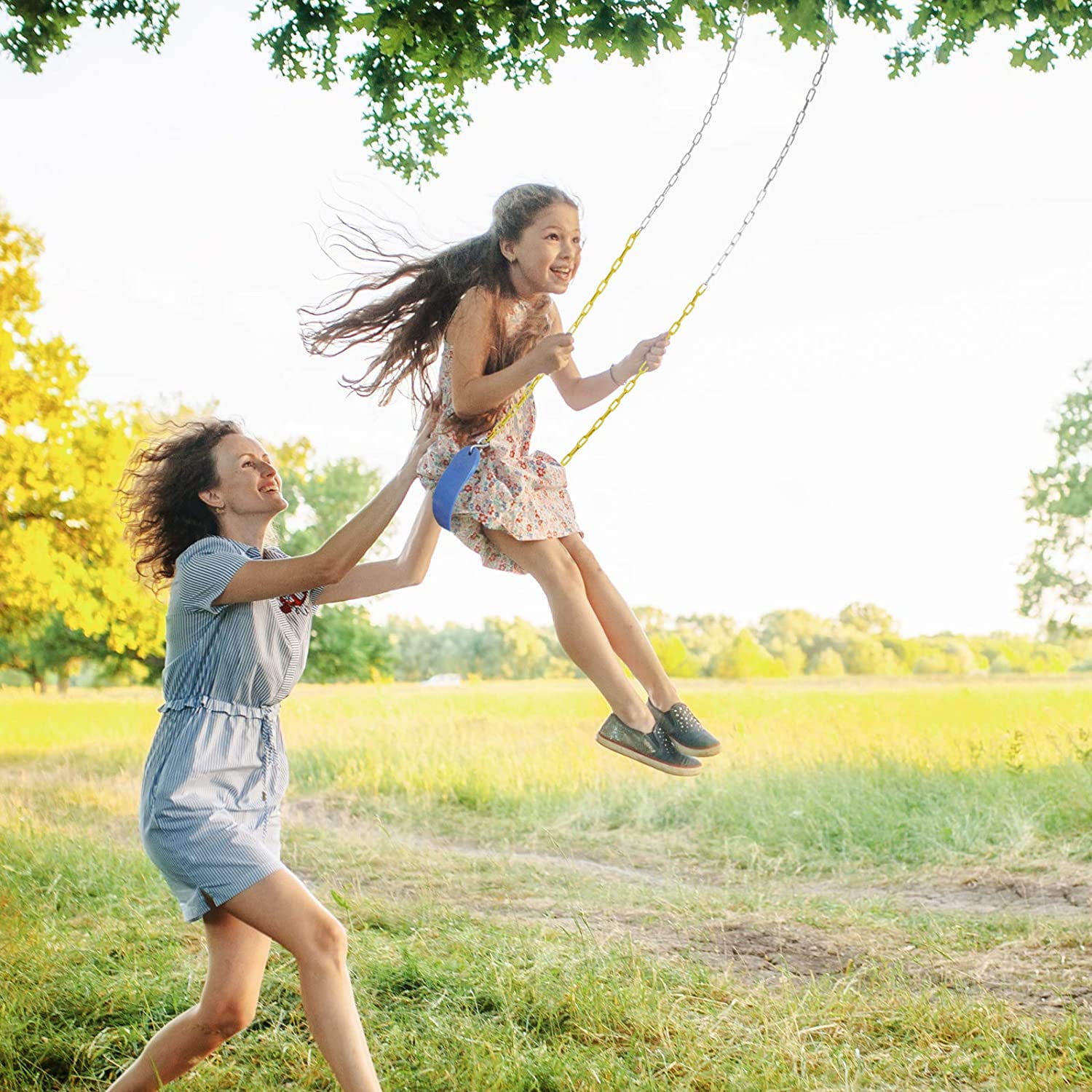 $39.55Specifications: Material: EVA Plastic, Galvanized Steel, Thermoplastic Coating Swing Seat: 26.5 x 5.5 Inches (L x W) Thickness: 1/2-1/4 Inch Hanging Strap Length: 20 Inches Chain Length: 66 Inches Package Included: 4 x Hanging Strap 4 x Chain 2 x Swing Seat 4 x Snap Hook 4 x S hook Key Features: